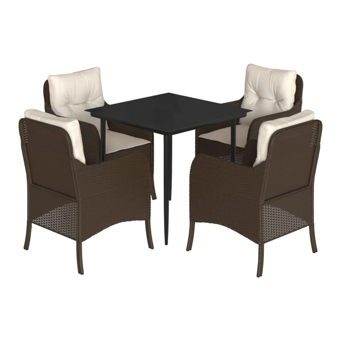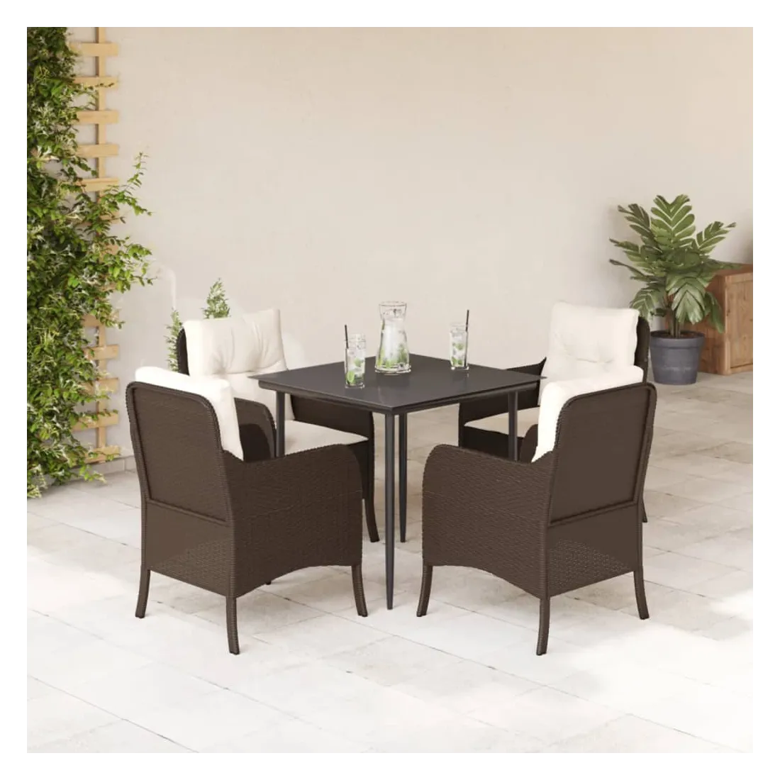 Cet ensemble de salle à manger de jardin est un excellent choix pour les repas en plein air ou pour vous détendre dans le jardin, l'arrière-cour ou le patio. Matériau durable : la résine tressée, également connue sous le nom de poly rotin, est un matériau synthétique solide et nécessitant peu d'entretien qui ressemble au rotin naturel. Il est léger, facile à nettoyer et couramment utilisé pour les meubles d'extérieur en raison de sa durabilité et de ses propriétés de résistance aux intempéries.Expérience d'assise confortable : ce mobilier d'extérieur, doté de coussins épais, offre une expérience d'assise confortable.Housse amovible et lavable : ces coussins de siège sont dotés de housses amovibles pour un lavage et un entretien faciles.Dessus en verre : le dessus de la table d'extérieur est fabriqué en verre trempé solide et durable, ce qui le rend facile à nettoyer avec un chiffon humide et ajoute une touche d'élégance à votre espace extérieur.Cadre robuste et stable : le cadre en acier enduit de poudre assure la solidité et la stabilité du meuble de jardin pour une utilisation quotidienne à l'extérieur. Bon à savoir :Pour que vos meubles d'extérieur restent beaux, nous vous recommandons de les protéger avec une housse imperméable.