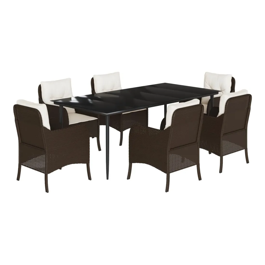 Cet ensemble de salle à manger de jardin est un excellent choix pour les repas en plein air ou pour vous détendre dans le jardin, l'arrière-cour ou le patio. Matériau durable : la résine tressée, également connue sous le nom de poly rotin, est un matériau synthétique solide et nécessitant peu d'entretien qui ressemble au rotin naturel. Il est léger, facile à nettoyer et couramment utilisé pour les meubles d'extérieur en raison de sa durabilité et de ses propriétés de résistance aux intempéries.Expérience d'assise confortable : ce mobilier d'extérieur, doté de coussins épais, offre une expérience d'assise confortable.Housse amovible et lavable : ces coussins de siège sont dotés de housses amovibles pour un lavage et un entretien faciles.Dessus en verre : le dessus de la table d'extérieur est fabriqué en verre trempé solide et durable, ce qui le rend facile à nettoyer avec un chiffon humide et ajoute une touche d'élégance à votre espace extérieur.Cadre robuste et stable : le cadre en acier enduit de poudre assure la solidité et la stabilité du meuble de jardin pour une utilisation quotidienne à l'extérieur. Bon à savoir :Pour que vos meubles d'extérieur restent beaux, nous vous recommandons de les protéger avec une housse imperméable.