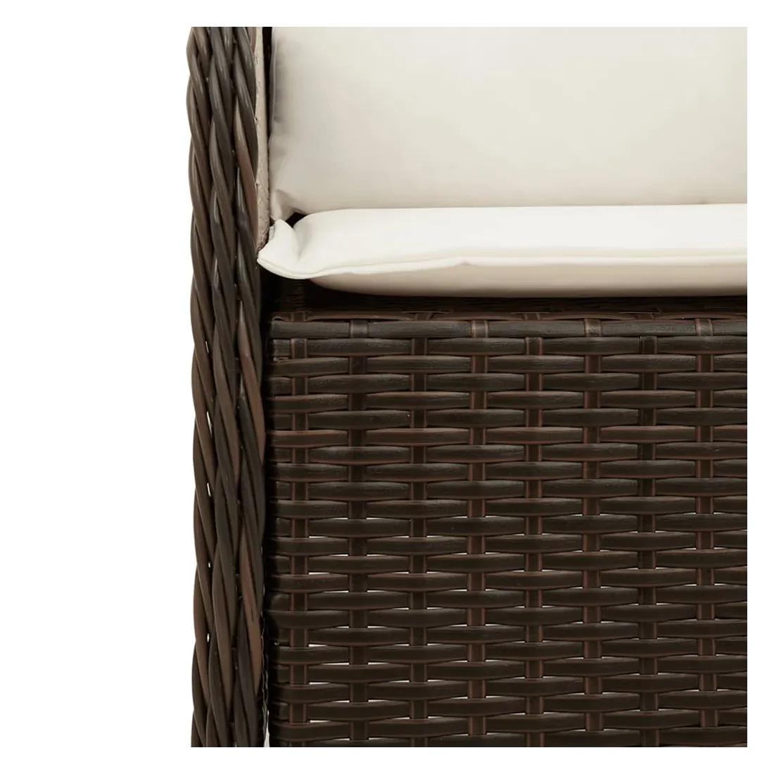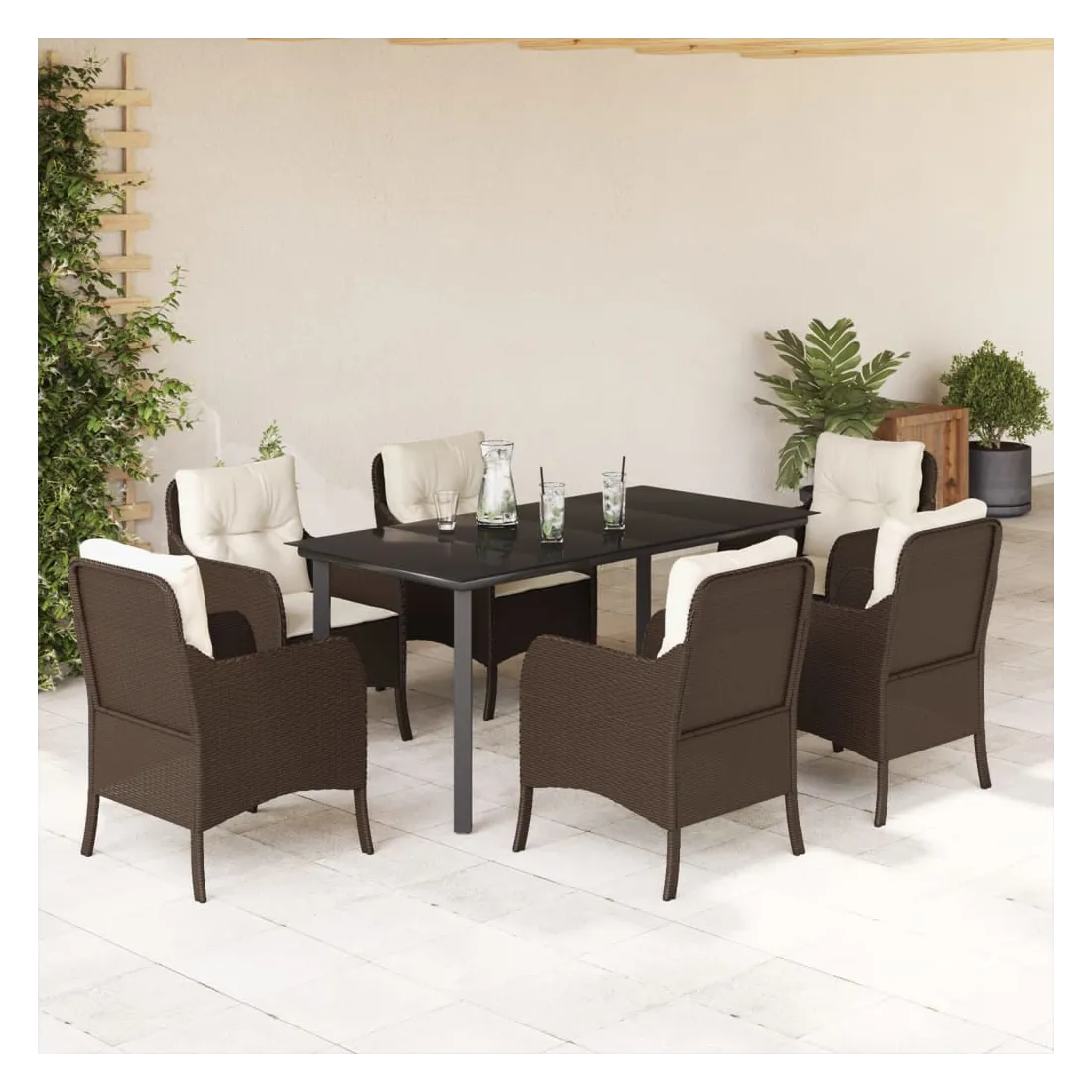 Cet ensemble de salle à manger de jardin est un excellent choix pour les repas en plein air ou pour vous détendre dans le jardin, l'arrière-cour ou le patio. Matériau durable : la résine tressée, également connue sous le nom de poly rotin, est un matériau synthétique solide et nécessitant peu d'entretien qui ressemble au rotin naturel. Il est léger, facile à nettoyer et couramment utilisé pour les meubles d'extérieur en raison de sa durabilité et de ses propriétés de résistance aux intempéries.Expérience d'assise confortable : ce mobilier d'extérieur, doté de coussins épais, offre une expérience d'assise confortable.Housse amovible et lavable : ces coussins de siège sont dotés de housses amovibles pour un lavage et un entretien faciles.Dessus en verre : le dessus de la table d'extérieur est fabriqué en verre trempé solide et durable, ce qui le rend facile à nettoyer avec un chiffon humide et ajoute une touche d'élégance à votre espace extérieur.Cadre robuste et stable : le cadre en acier enduit de poudre assure la solidité et la stabilité du meuble de jardin pour une utilisation quotidienne à l'extérieur. Bon à savoir :Pour que vos meubles d'extérieur restent beaux, nous vous recommandons de les protéger avec une housse imperméable.