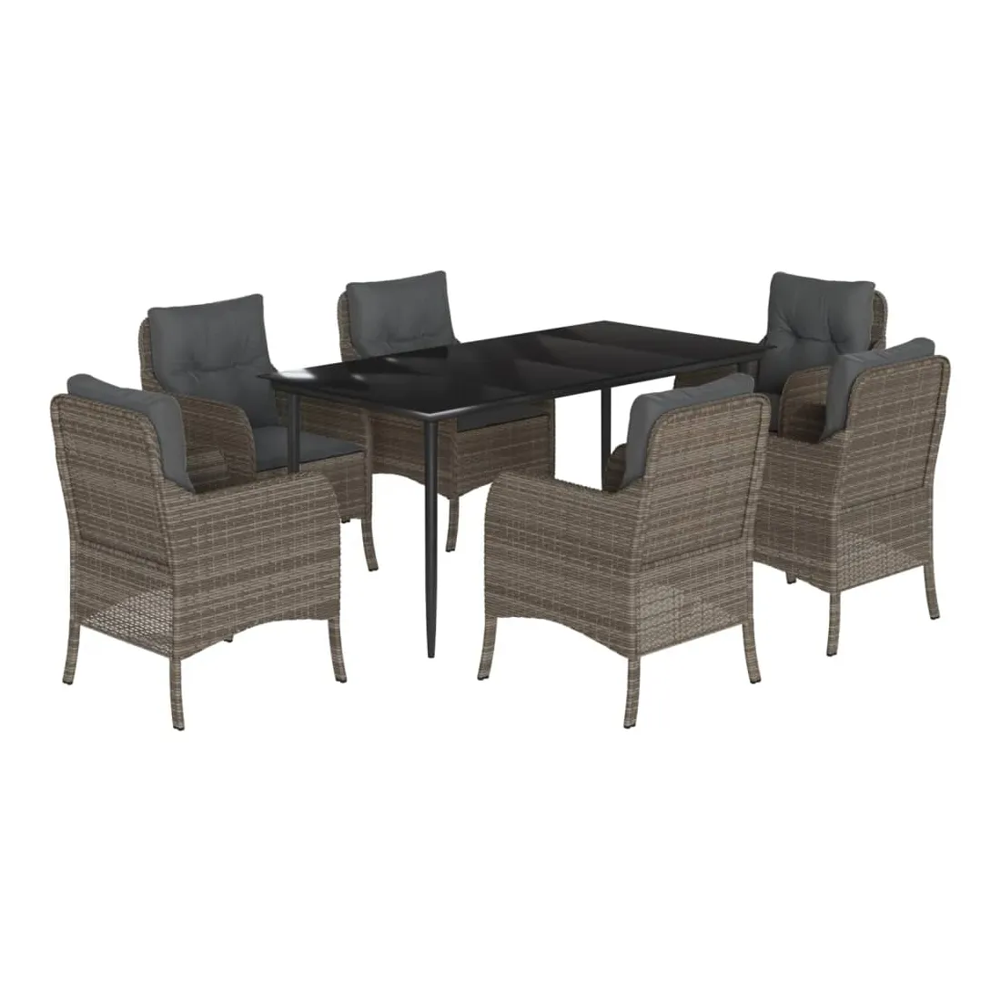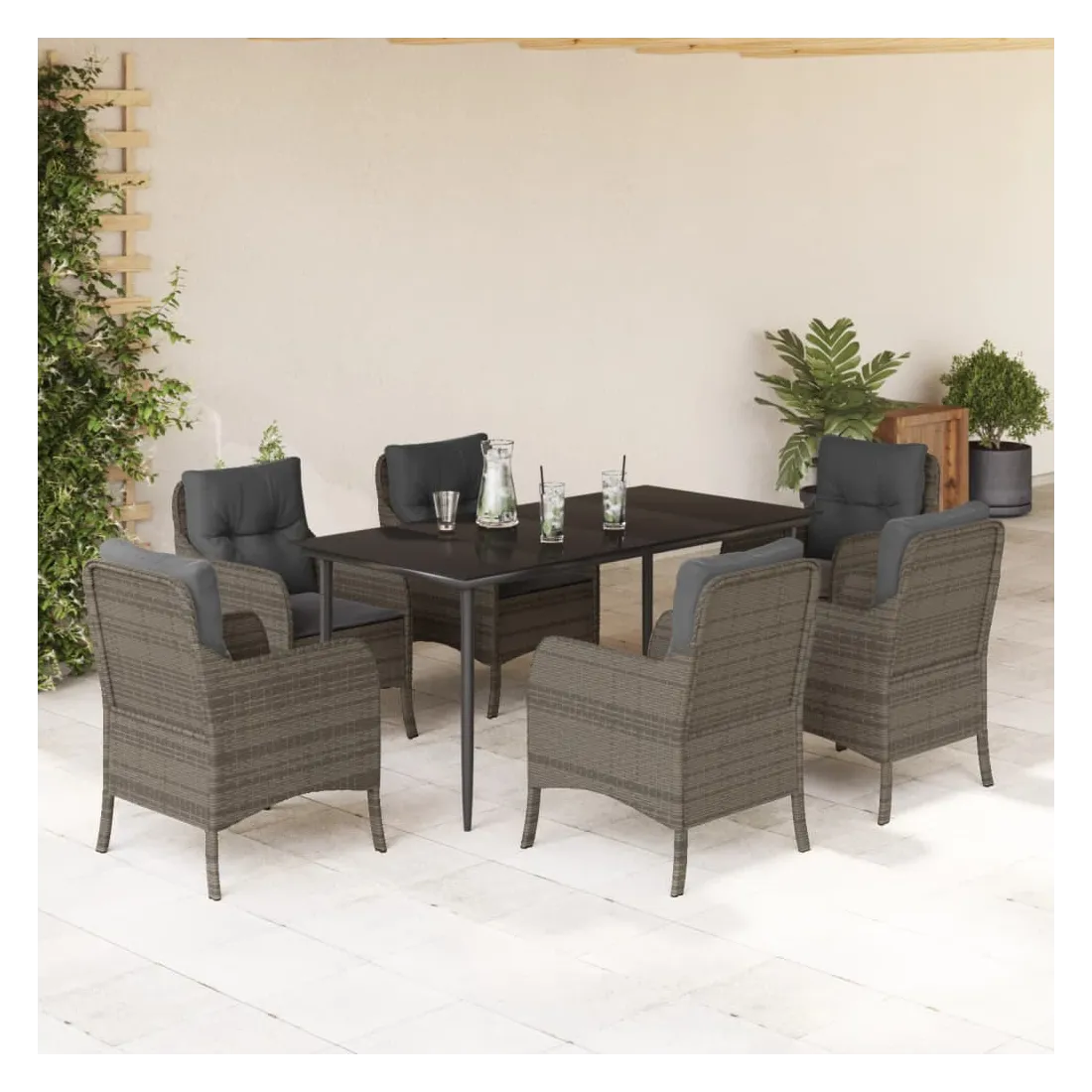 Cet ensemble de salle à manger de jardin est un excellent choix pour les repas en plein air ou pour vous détendre dans le jardin, l'arrière-cour ou le patio. Matériau durable : la résine tressée, également connue sous le nom de poly rotin, est un matériau synthétique solide et nécessitant peu d'entretien qui ressemble au rotin naturel. Il est léger, facile à nettoyer et couramment utilisé pour les meubles d'extérieur en raison de sa durabilité et de ses propriétés de résistance aux intempéries.Expérience d'assise confortable : ce mobilier d'extérieur, doté de coussins épais, offre une expérience d'assise confortable.Housse amovible et lavable : ces coussins de siège sont dotés de housses amovibles pour un lavage et un entretien faciles.Dessus en verre : le dessus de la table d'extérieur est fabriqué en verre trempé solide et durable, ce qui le rend facile à nettoyer avec un chiffon humide et ajoute une touche d'élégance à votre espace extérieur.Cadre robuste et stable : le cadre en acier enduit de poudre assure la solidité et la stabilité du meuble de jardin pour une utilisation quotidienne à l'extérieur. Bon à savoir :Pour que vos meubles d'extérieur restent beaux, nous vous recommandons de les protéger avec une housse imperméable.