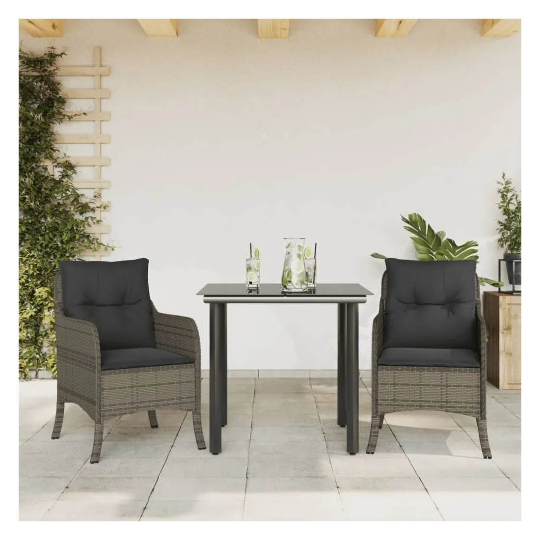 Cet ensemble de salle à manger de jardin est un excellent choix pour les repas en plein air ou pour vous détendre dans le jardin, l'arrière-cour ou le patio. Matériau durable : la résine tressée, également connue sous le nom de poly rotin, est un matériau synthétique solide et nécessitant peu d'entretien qui ressemble au rotin naturel. Il est léger, facile à nettoyer et couramment utilisé pour les meubles d'extérieur en raison de sa durabilité et de ses propriétés de résistance aux intempéries.Expérience d'assise confortable : ce mobilier d'extérieur, doté de coussins épais, offre une expérience d'assise confortable.Housse amovible et lavable : ces coussins de siège sont dotés de housses amovibles pour un lavage et un entretien faciles.Dessus en verre : le dessus de la table d'extérieur est fabriqué en verre trempé solide et durable, ce qui le rend facile à nettoyer avec un chiffon humide et ajoute une touche d'élégance à votre espace extérieur.Cadre robuste et stable : le cadre en acier enduit de poudre assure la solidité et la stabilité du meuble de jardin pour une utilisation quotidienne à l'extérieur. Bon à savoir :Pour que vos meubles d'extérieur restent beaux, nous vous recommandons de les protéger avec une housse imperméable.