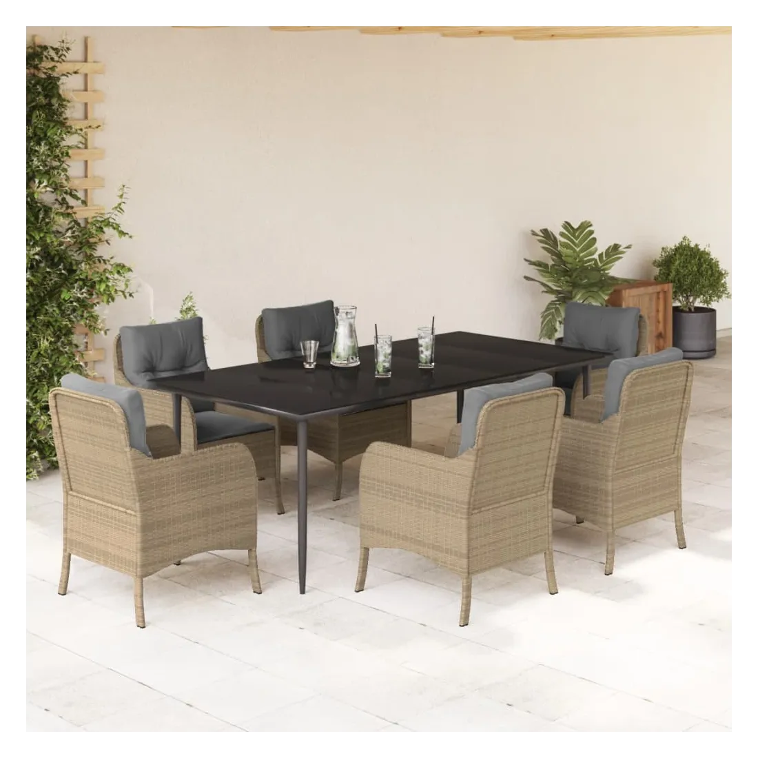 Ensemble à manger de jardin et coussins 7 pcs beige poly rotin