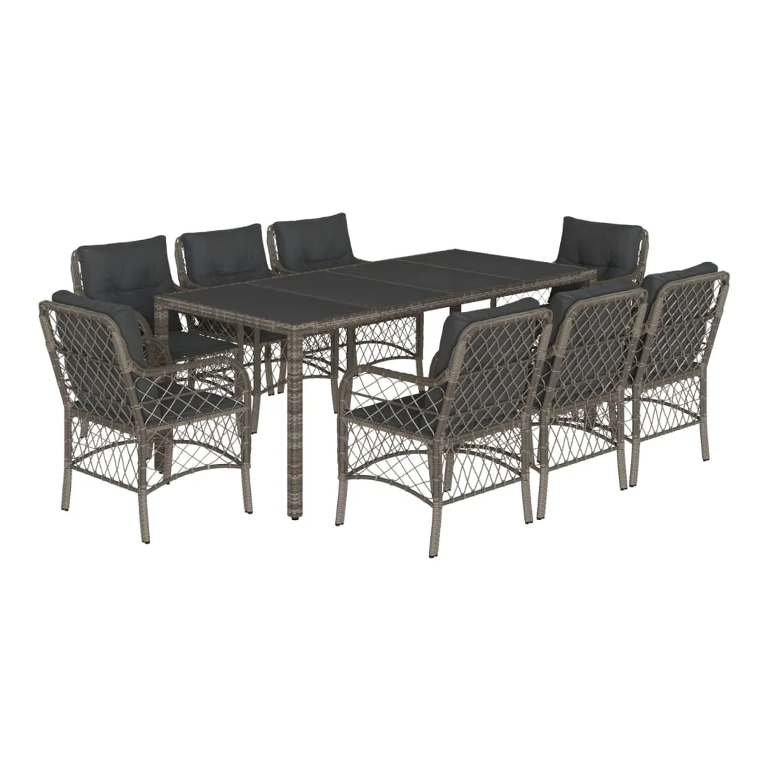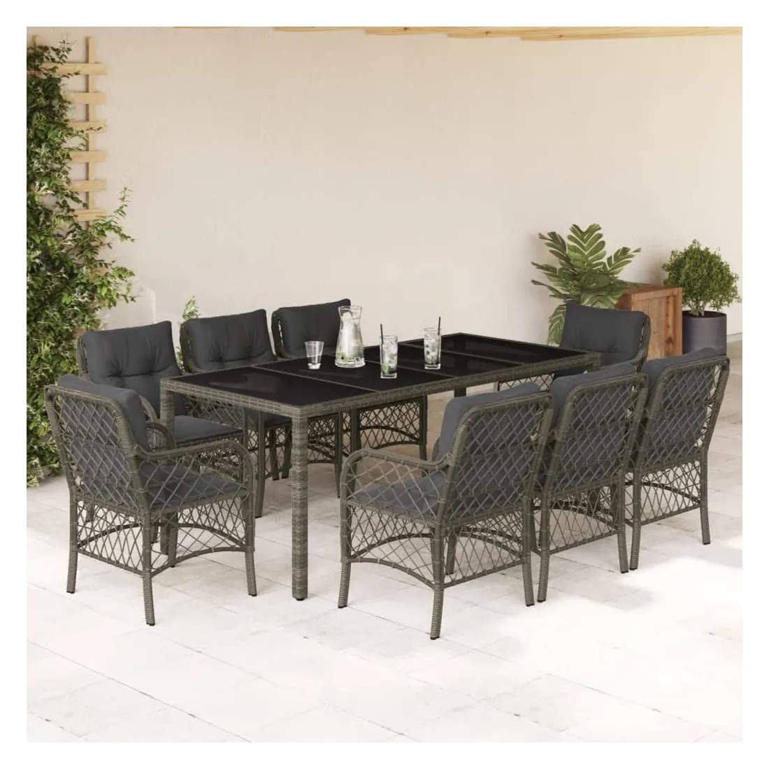 Cet ensemble de salle à manger de jardin est un excellent choix pour les repas en plein air ou pour vous détendre dans le jardin, l'arrière-cour ou le patio. Matériau durable : la résine tressée, également connue sous le nom de poly rotin, est un matériau synthétique solide et nécessitant peu d'entretien qui ressemble au rotin naturel. Il est léger, facile à nettoyer et couramment utilisé pour les meubles d'extérieur en raison de sa durabilité et de ses propriétés de résistance aux intempéries.Expérience d'assise confortable : ce mobilier d'extérieur, doté de coussins épais, offre une expérience d'assise confortable.Housse amovible et lavable : ces coussins de siège sont dotés de housses amovibles pour un lavage et un entretien faciles.Dessus en verre : le dessus de la table d'extérieur est fabriqué en verre trempé solide et durable, ce qui le rend facile à nettoyer avec un chiffon humide et ajoute une touche d'élégance à votre espace extérieur.Cadre robuste et stable : le cadre en acier enduit de poudre assure la solidité et la stabilité du meuble de jardin pour une utilisation quotidienne à l'extérieur. Bon à savoir :Pour que vos meubles d'extérieur restent beaux, nous vous recommandons de les protéger avec une housse imperméable.