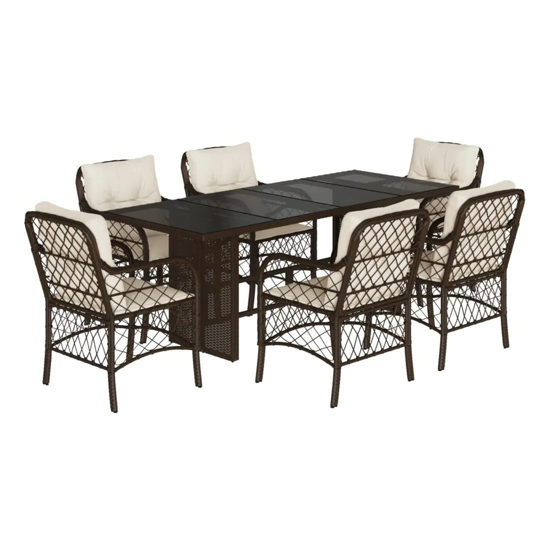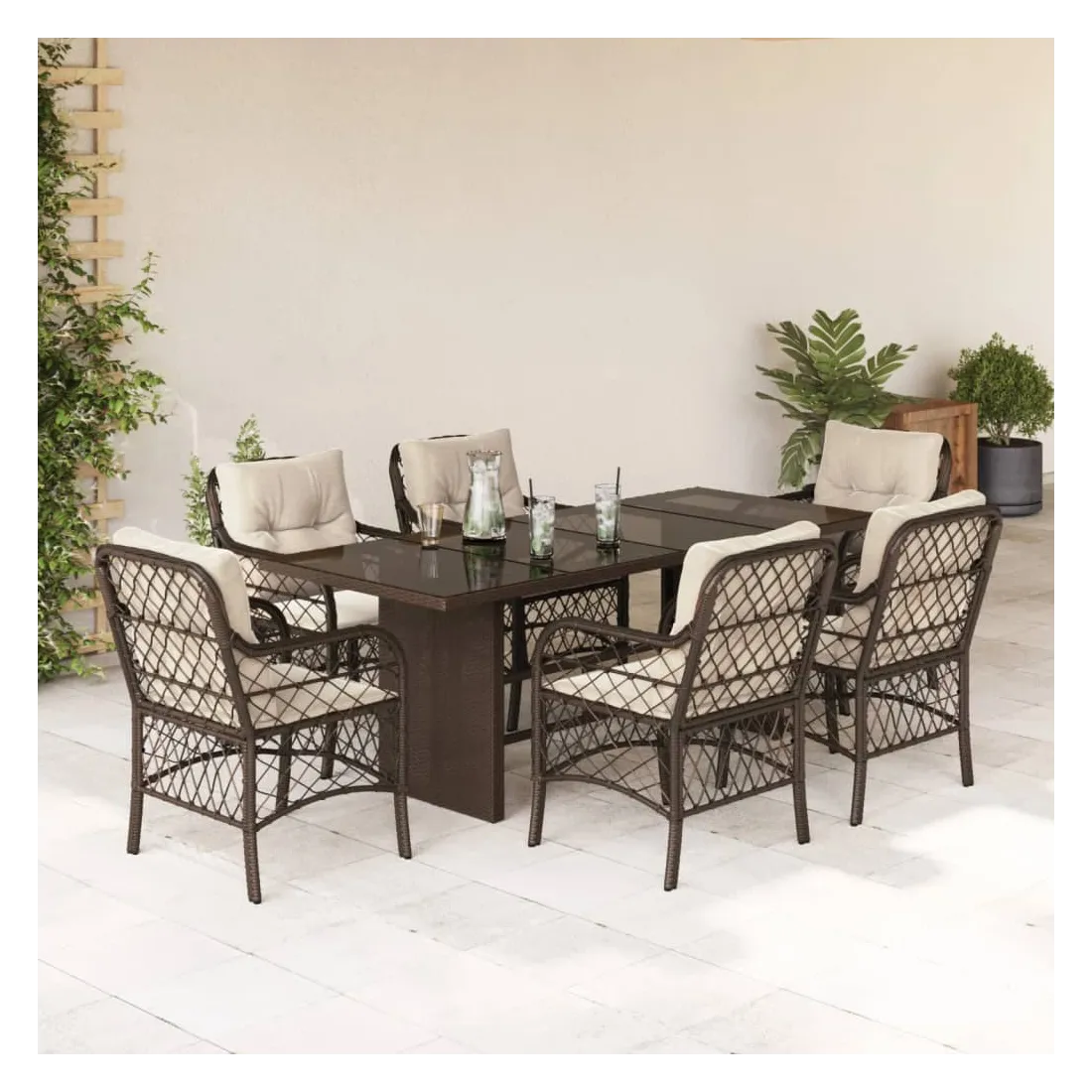 Cet ensemble de salle à manger de jardin est un excellent choix pour les repas en plein air ou pour vous détendre dans le jardin, l'arrière-cour ou le patio. Matériau durable : la résine tressée, également connue sous le nom de poly rotin, est un matériau synthétique solide et nécessitant peu d'entretien qui ressemble au rotin naturel. Il est léger, facile à nettoyer et couramment utilisé pour les meubles d'extérieur en raison de sa durabilité et de ses propriétés de résistance aux intempéries.Expérience d'assise confortable : ce mobilier d'extérieur, doté de coussins épais, offre une expérience d'assise confortable.Housse amovible et lavable : ces coussins de siège sont dotés de housses amovibles pour un lavage et un entretien faciles.Dessus en verre : le dessus de la table d'extérieur est fabriqué en verre trempé solide et durable, ce qui le rend facile à nettoyer avec un chiffon humide et ajoute une touche d'élégance à votre espace extérieur.Cadre robuste et stable : le cadre en acier enduit de poudre assure la solidité et la stabilité du meuble de jardin pour une utilisation quotidienne à l'extérieur. Bon à savoir :Pour que vos meubles d'extérieur restent beaux, nous vous recommandons de les protéger avec une housse imperméable.