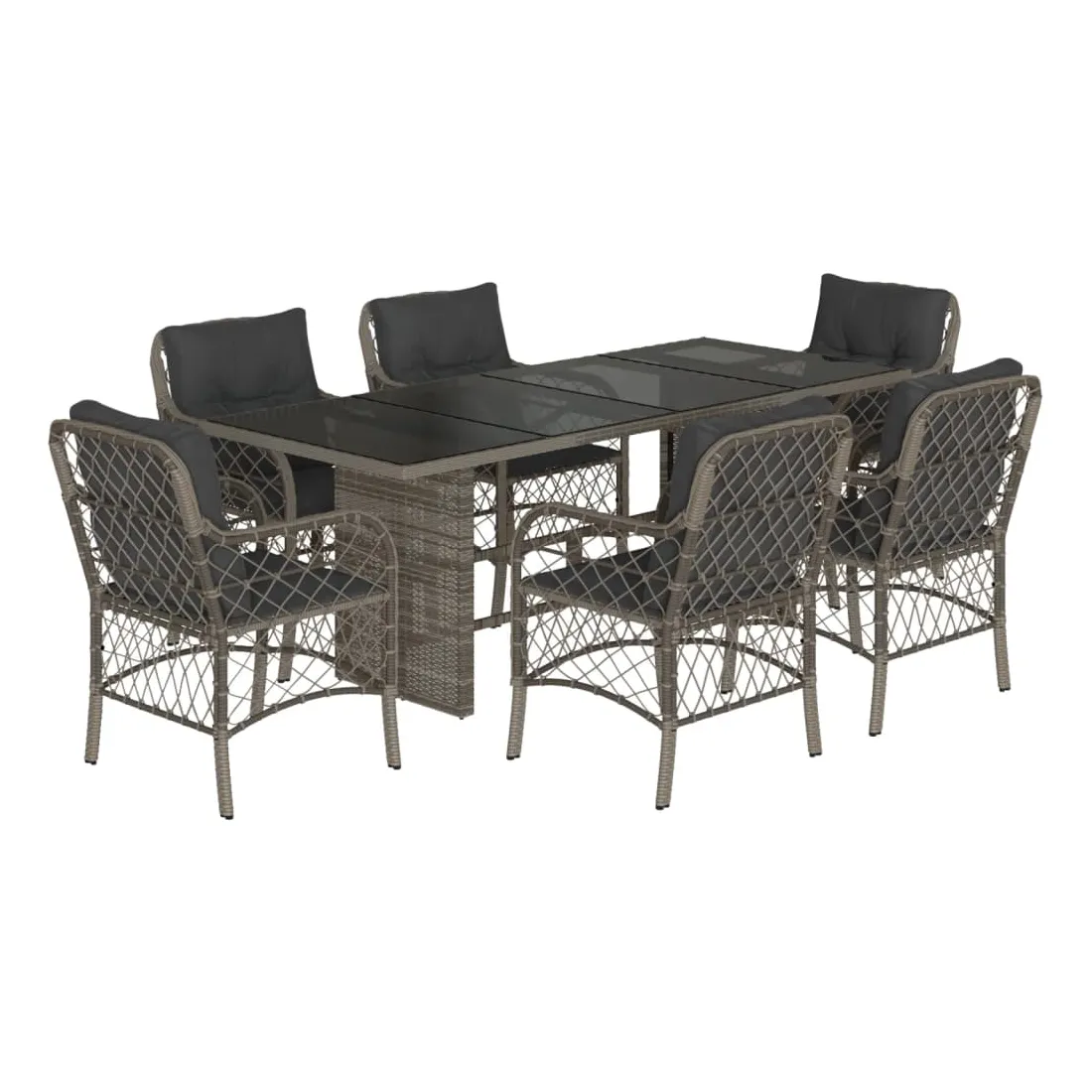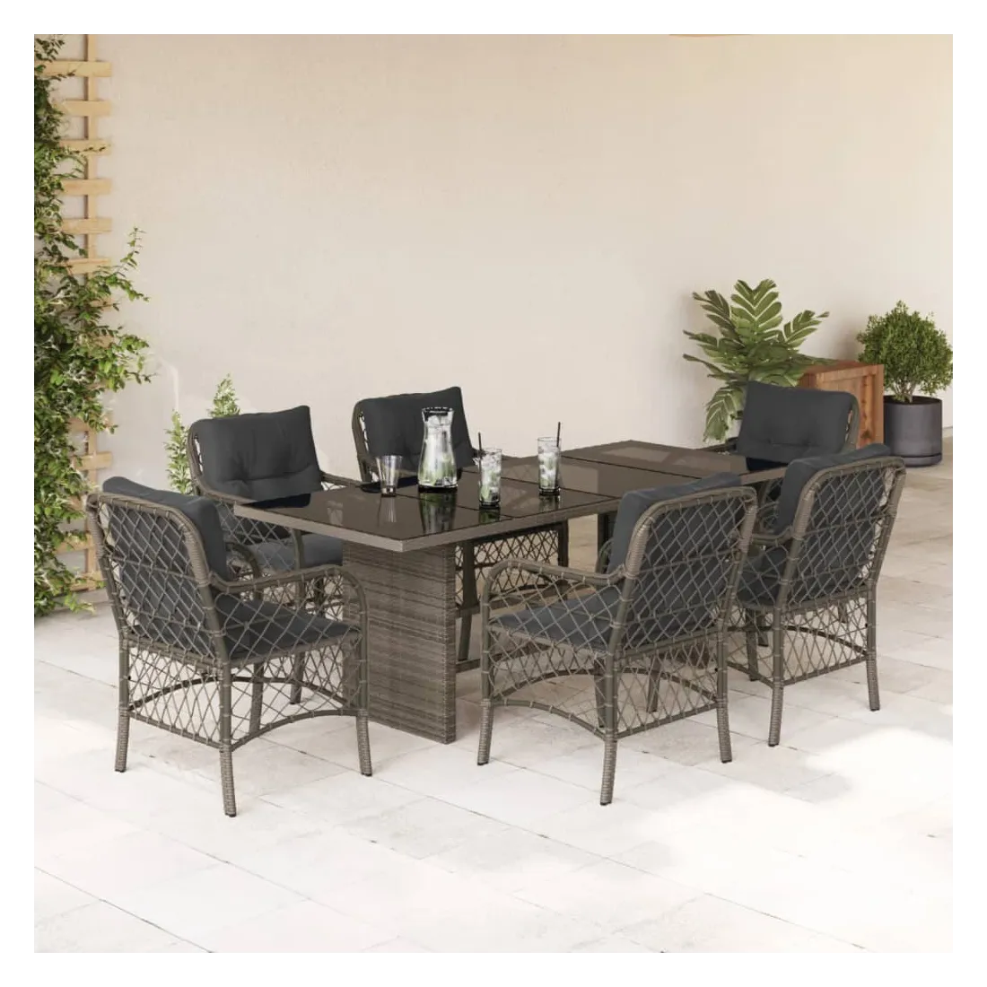 Cet ensemble de salle à manger de jardin est un excellent choix pour les repas en plein air ou pour vous détendre dans le jardin, l'arrière-cour ou le patio. Matériau durable : la résine tressée, également connue sous le nom de poly rotin, est un matériau synthétique solide et nécessitant peu d'entretien qui ressemble au rotin naturel. Il est léger, facile à nettoyer et couramment utilisé pour les meubles d'extérieur en raison de sa durabilité et de ses propriétés de résistance aux intempéries.Expérience d'assise confortable : ce mobilier d'extérieur, doté de coussins épais, offre une expérience d'assise confortable.Housse amovible et lavable : ces coussins de siège sont dotés de housses amovibles pour un lavage et un entretien faciles.Dessus en verre : le dessus de la table d'extérieur est fabriqué en verre trempé solide et durable, ce qui le rend facile à nettoyer avec un chiffon humide et ajoute une touche d'élégance à votre espace extérieur.Cadre robuste et stable : le cadre en acier enduit de poudre assure la solidité et la stabilité du meuble de jardin pour une utilisation quotidienne à l'extérieur. Bon à savoir :Pour que vos meubles d'extérieur restent beaux, nous vous recommandons de les protéger avec une housse imperméable.