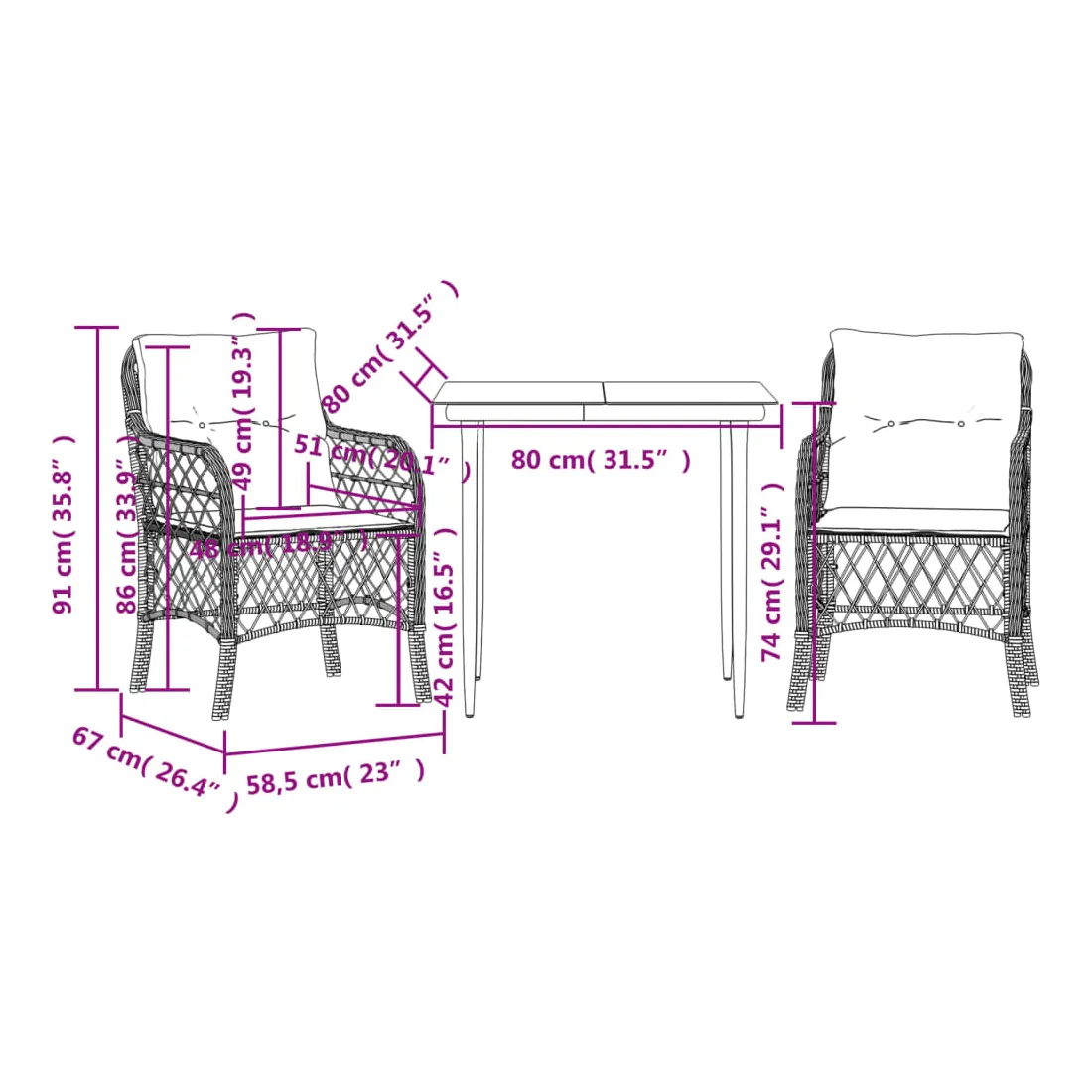 Savourez un café ou discutez avec votre famille et vos amis dans le jardin, l'arrière-cour ou sur le balcon avec cet ensemble de bistro confortable ! Matériau durable : la résine tressée, également connue sous le nom de poly rotin, est un matériau synthétique solide et nécessitant peu d'entretien qui ressemble au rotin naturel. Il est léger, facile à nettoyer et couramment utilisé pour les meubles d'extérieur en raison de sa durabilité et de ses propriétés de résistance aux intempéries.Expérience d'assise confortable : cet ensemble de meubles d'extérieur, doté de coussins épais, offre une expérience d'assise confortable.Housse amovible et lavable : ces coussins de siège sont dotés de housses amovibles pour un lavage et un entretien faciles.Dessus en verre : le dessus de la table d'extérieur est fabriqué en verre trempé solide et durable, ce qui le rend facile à nettoyer avec un chiffon humide et ajoute une touche d'élégance à votre espace extérieur. Bon à savoir :Pour que vos meubles d'extérieur restent beaux, nous vous recommandons de les protéger avec une housse imperméable.
