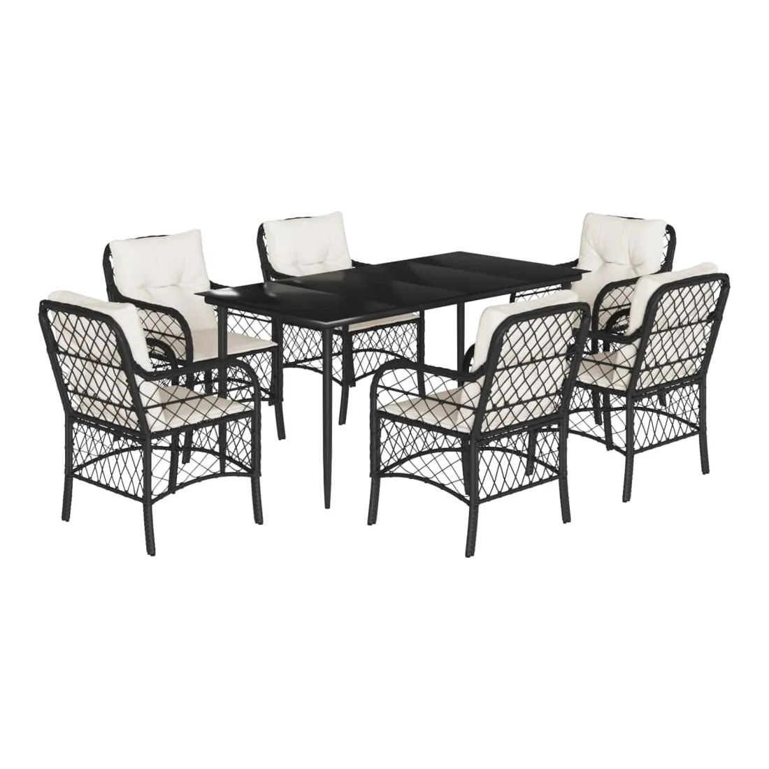 Cet ensemble de salle à manger de jardin est un excellent choix pour les repas en plein air ou pour vous détendre dans le jardin, l'arrière-cour ou le patio. Matériau durable : la résine tressée, également connue sous le nom de poly rotin, est un matériau synthétique solide et nécessitant peu d'entretien qui ressemble au rotin naturel. Il est léger, facile à nettoyer et couramment utilisé pour les meubles d'extérieur en raison de sa durabilité et de ses propriétés de résistance aux intempéries.Expérience d'assise confortable : ce mobilier d'extérieur, doté de coussins épais, offre une expérience d'assise confortable.Housse amovible et lavable : ces coussins de siège sont dotés de housses amovibles pour un lavage et un entretien faciles.Dessus en verre : le dessus de la table d'extérieur est fabriqué en verre trempé solide et durable, ce qui le rend facile à nettoyer avec un chiffon humide et ajoute une touche d'élégance à votre espace extérieur.Cadre robuste et stable : le cadre en acier enduit de poudre assure la solidité et la stabilité du meuble de jardin pour une utilisation quotidienne à l'extérieur. Bon à savoir :Pour que vos meubles d'extérieur restent beaux, nous vous recommandons de les protéger avec une housse imperméable.
