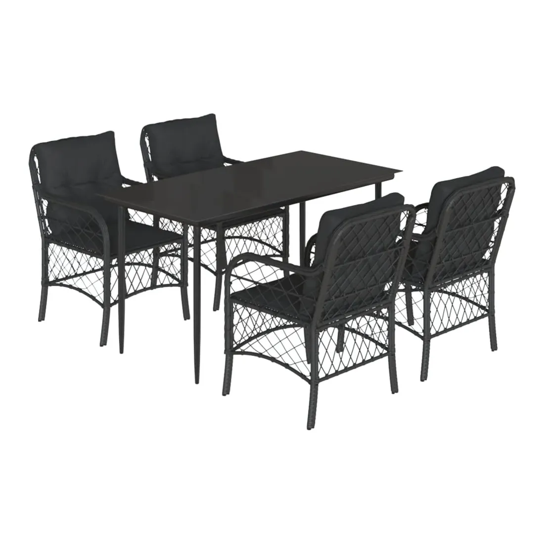 Ensemble à manger de jardin coussins 5pcs Noir Résine tressée