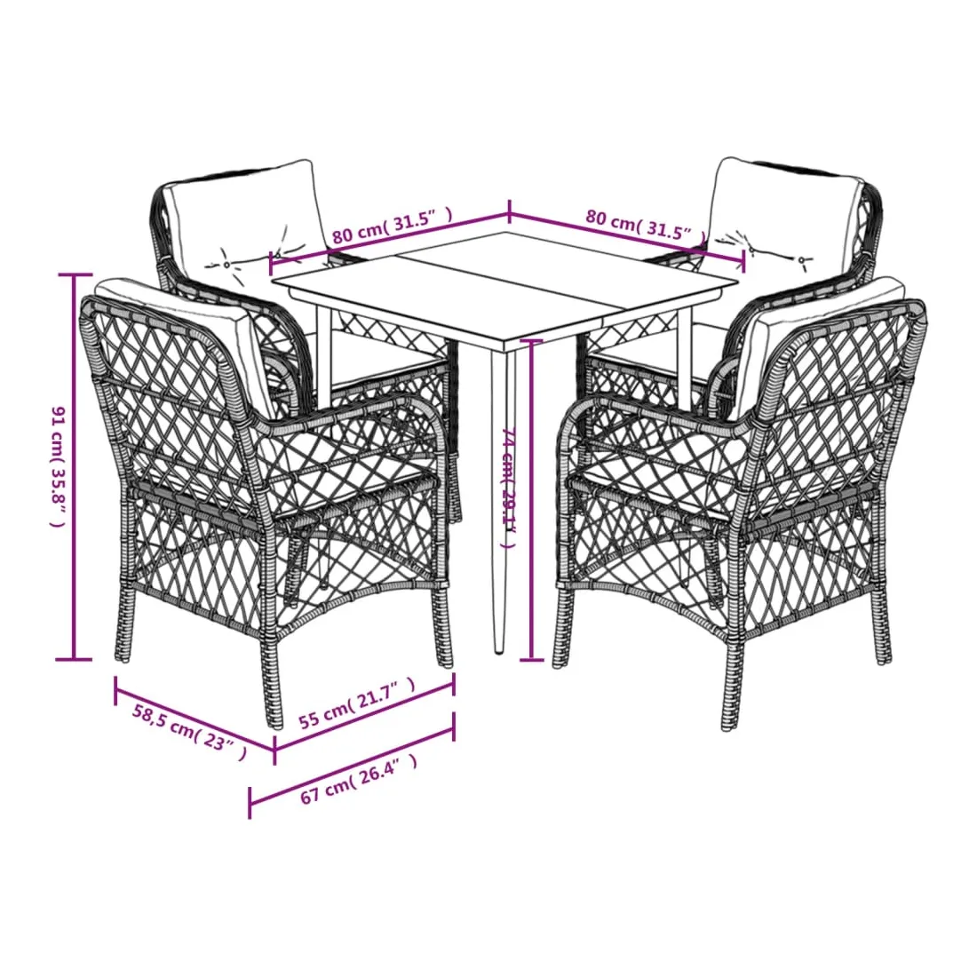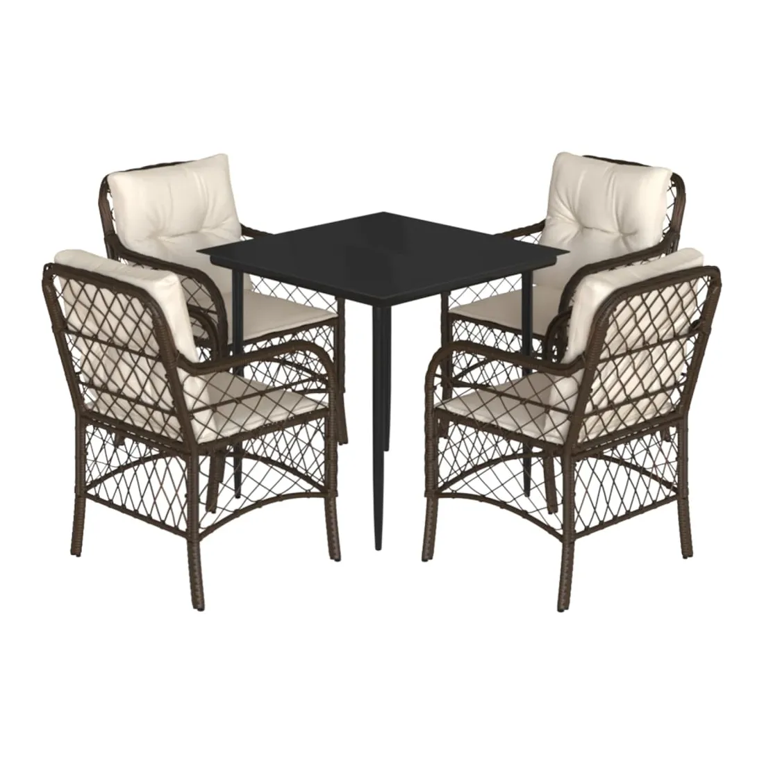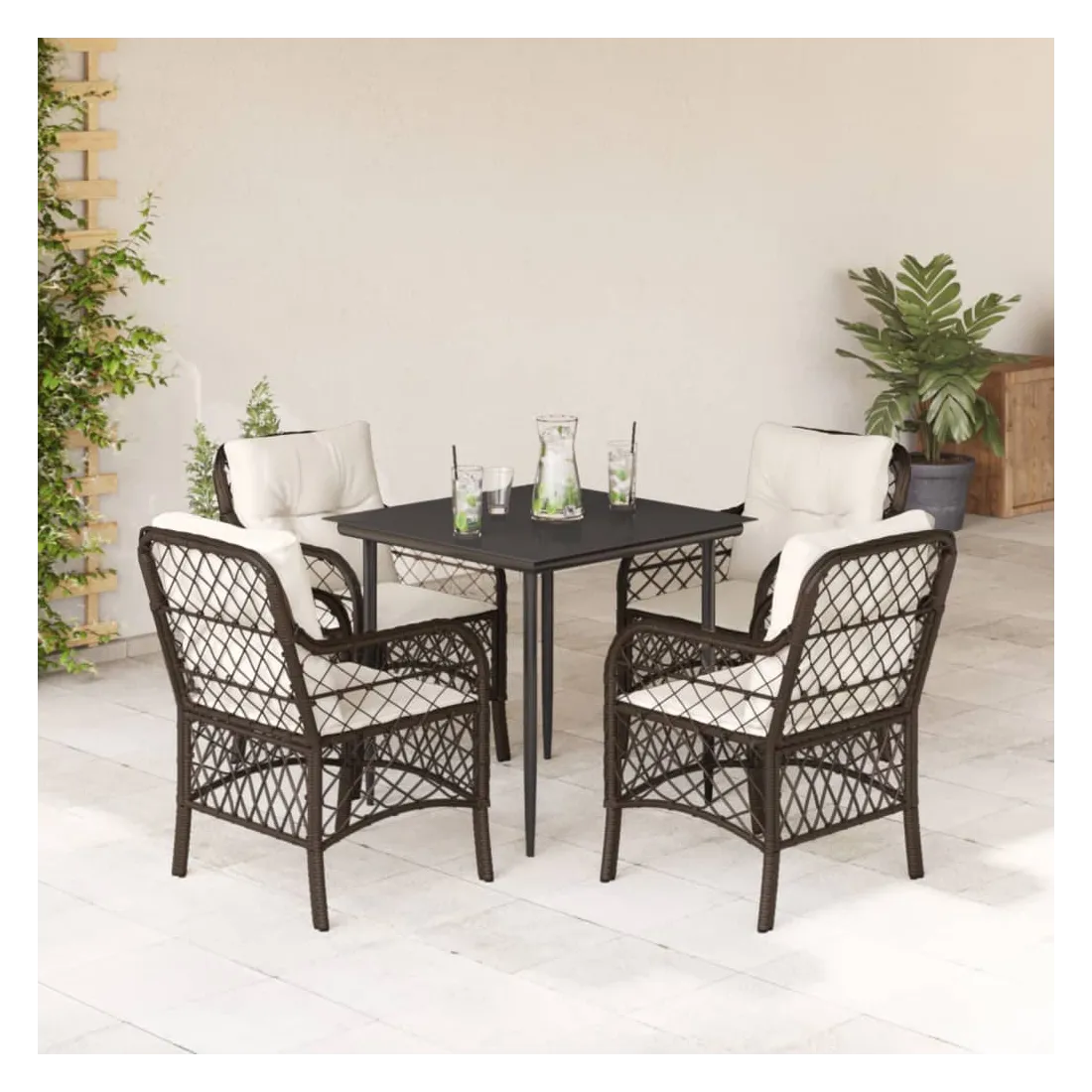 Cet ensemble de salle à manger de jardin est un excellent choix pour les repas en plein air ou pour vous détendre dans le jardin, l'arrière-cour ou le patio. Matériau durable : la résine tressée, également connue sous le nom de poly rotin, est un matériau synthétique solide et nécessitant peu d'entretien qui ressemble au rotin naturel. Il est léger, facile à nettoyer et couramment utilisé pour les meubles d'extérieur en raison de sa durabilité et de ses propriétés de résistance aux intempéries.Expérience d'assise confortable : ce mobilier d'extérieur, doté de coussins épais, offre une expérience d'assise confortable.Housse amovible et lavable : ces coussins de siège sont dotés de housses amovibles pour un lavage et un entretien faciles.Dessus en verre : le dessus de la table d'extérieur est fabriqué en verre trempé solide et durable, ce qui le rend facile à nettoyer avec un chiffon humide et ajoute une touche d'élégance à votre espace extérieur.Cadre robuste et stable : le cadre en acier enduit de poudre assure la solidité et la stabilité du meuble de jardin pour une utilisation quotidienne à l'extérieur. Bon à savoir :Pour que vos meubles d'extérieur restent beaux, nous vous recommandons de les protéger avec une housse imperméable.
