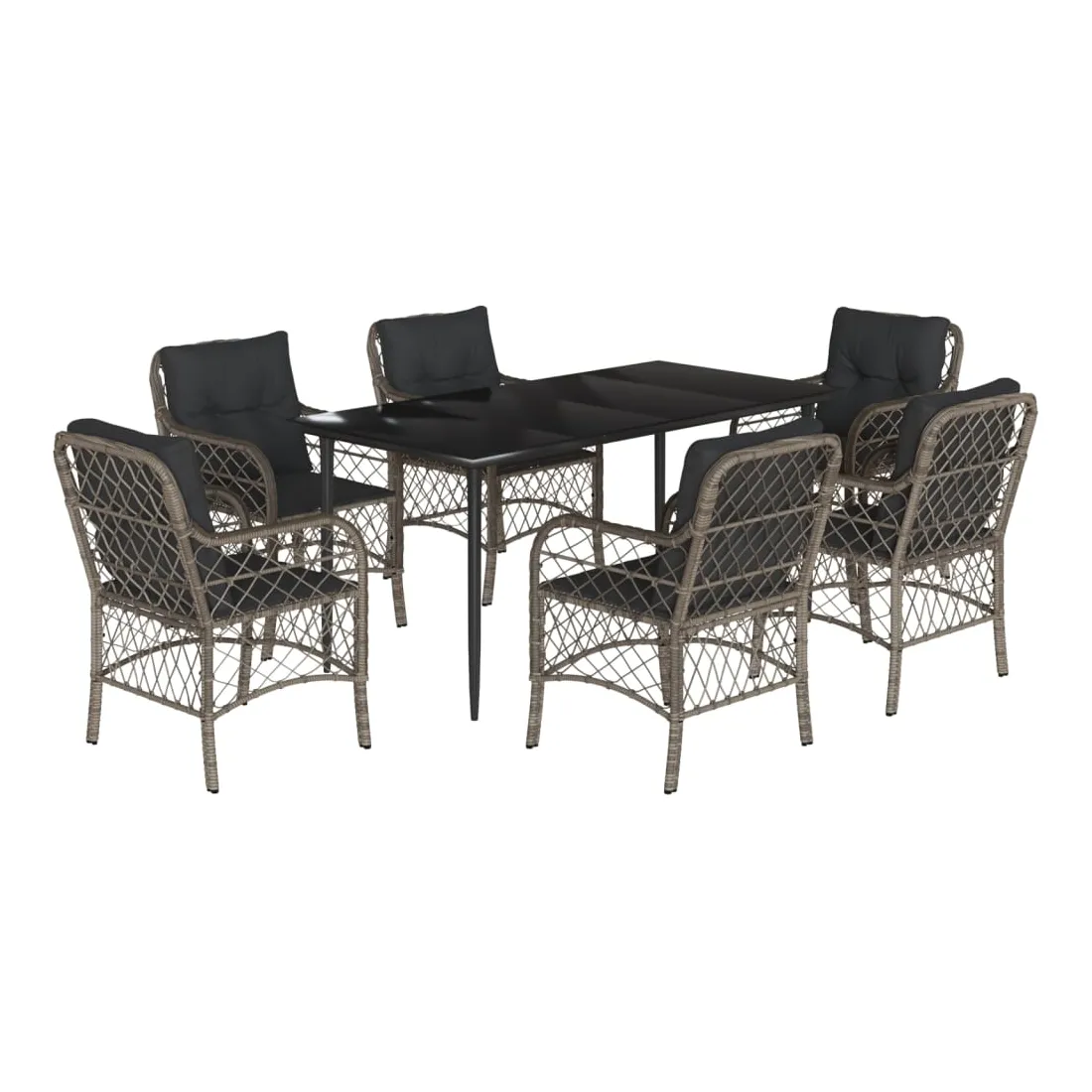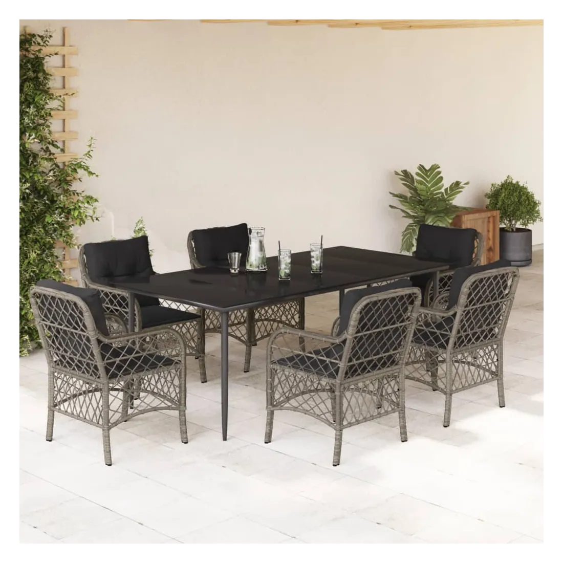 Cet ensemble de salle à manger de jardin est un excellent choix pour les repas en plein air ou pour vous détendre dans le jardin, l'arrière-cour ou le patio. Matériau durable : la résine tressée, également connue sous le nom de poly rotin, est un matériau synthétique solide et nécessitant peu d'entretien qui ressemble au rotin naturel. Il est léger, facile à nettoyer et couramment utilisé pour les meubles d'extérieur en raison de sa durabilité et de ses propriétés de résistance aux intempéries.Expérience d'assise confortable : ce mobilier d'extérieur, doté de coussins épais, offre une expérience d'assise confortable.Housse amovible et lavable : ces coussins de siège sont dotés de housses amovibles pour un lavage et un entretien faciles.Dessus en verre : le dessus de la table d'extérieur est fabriqué en verre trempé solide et durable, ce qui le rend facile à nettoyer avec un chiffon humide et ajoute une touche d'élégance à votre espace extérieur.Cadre robuste et stable : le cadre en acier enduit de poudre assure la solidité et la stabilité du meuble de jardin pour une utilisation quotidienne à l'extérieur. Bon à savoir :Pour que vos meubles d'extérieur restent beaux, nous vous recommandons de les protéger avec une housse imperméable.
