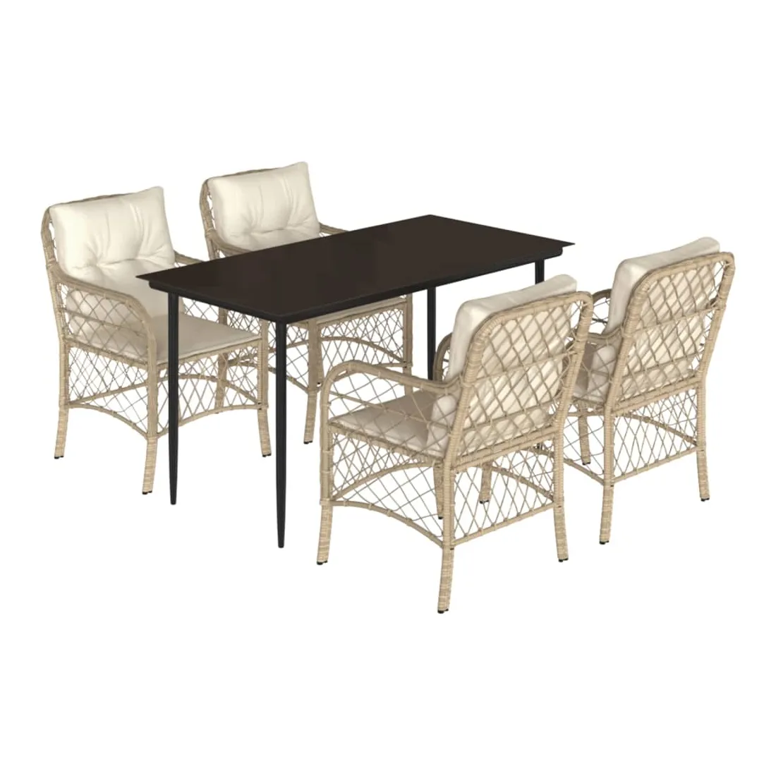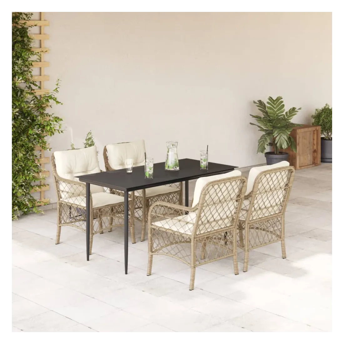 Cet ensemble de salle à manger de jardin est un excellent choix pour les repas en plein air ou pour vous détendre dans le jardin, l'arrière-cour ou le patio. Matériau durable : la résine tressée, également connue sous le nom de poly rotin, est un matériau synthétique solide et nécessitant peu d'entretien qui ressemble au rotin naturel. Il est léger, facile à nettoyer et couramment utilisé pour les meubles d'extérieur en raison de sa durabilité et de ses propriétés de résistance aux intempéries.Expérience d'assise confortable : ce mobilier d'extérieur, doté de coussins épais, offre une expérience d'assise confortable.Housse amovible et lavable : ces coussins de siège sont dotés de housses amovibles pour un lavage et un entretien faciles.Dessus en verre : le dessus de la table d'extérieur est fabriqué en verre trempé solide et durable, ce qui le rend facile à nettoyer avec un chiffon humide et ajoute une touche d'élégance à votre espace extérieur.Cadre robuste et stable : le cadre en acier enduit de poudre assure la solidité et la stabilité du meuble de jardin pour une utilisation quotidienne à l'extérieur. Bon à savoir :Pour que vos meubles d'extérieur restent beaux, nous vous recommandons de les protéger avec une housse imperméable.