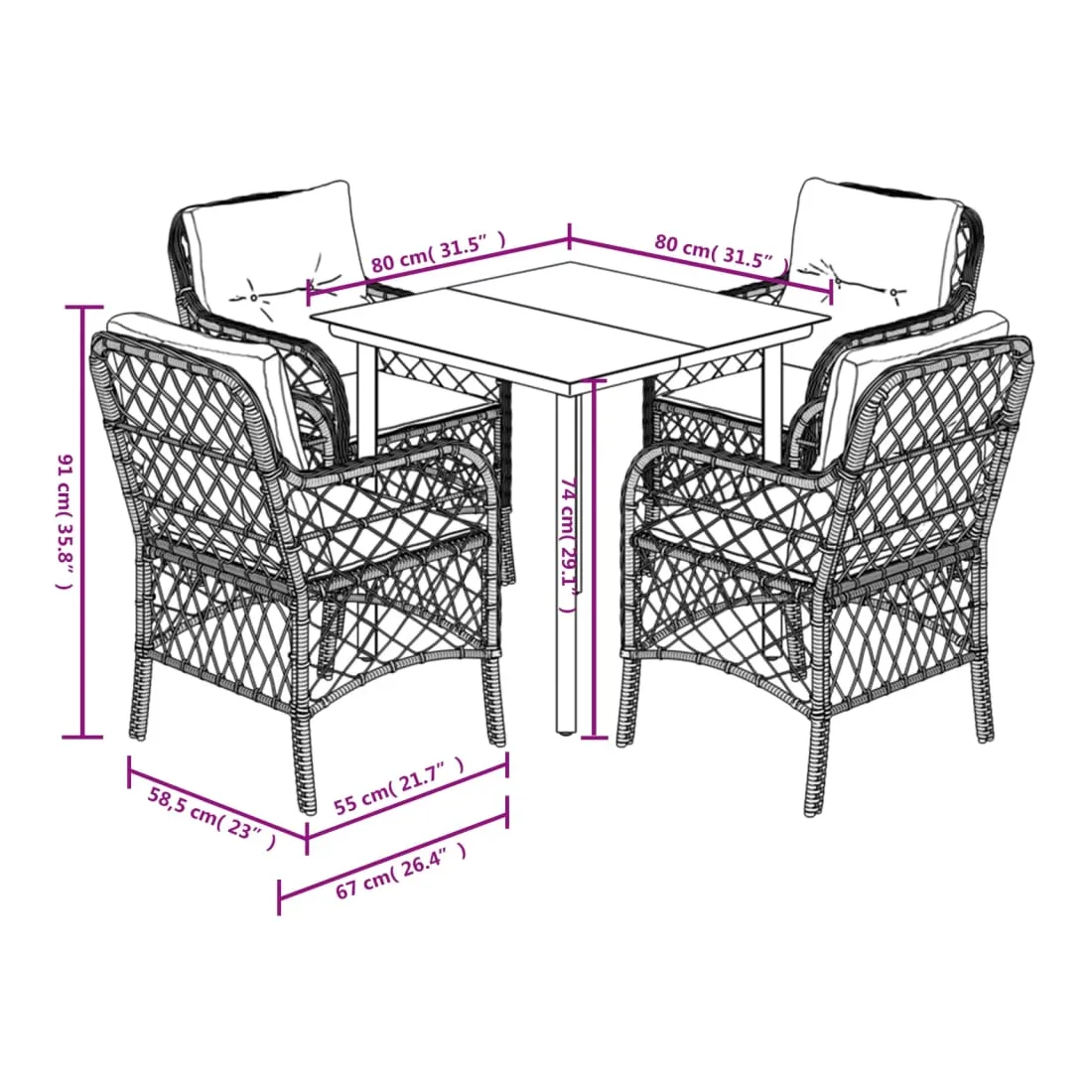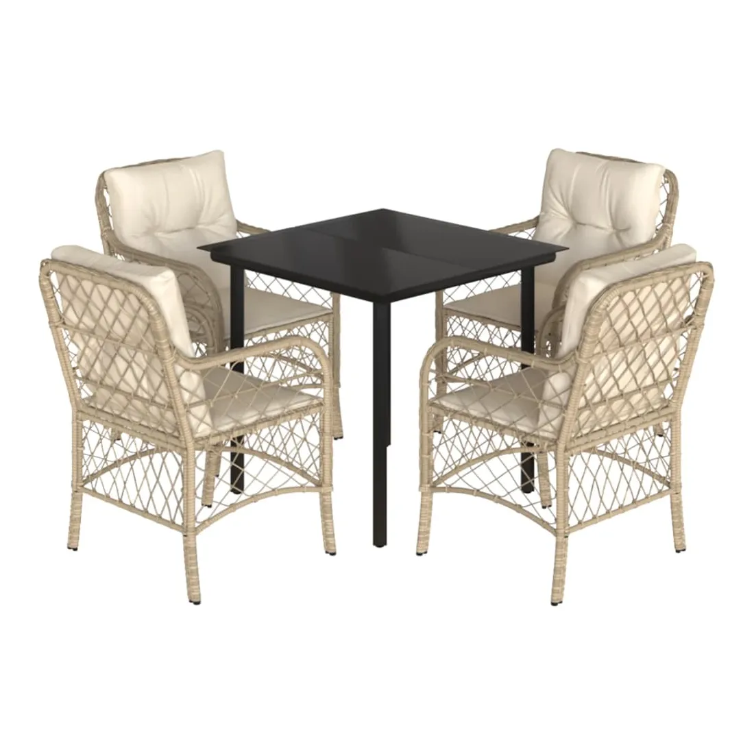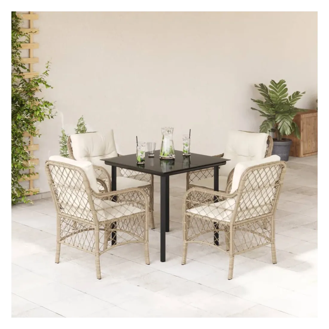 Cet ensemble de salle à manger de jardin est un excellent choix pour les repas en plein air ou pour vous détendre dans le jardin, l'arrière-cour ou le patio. Matériau durable : la résine tressée, également connue sous le nom de poly rotin, est un matériau synthétique solide et nécessitant peu d'entretien qui ressemble au rotin naturel. Il est léger, facile à nettoyer et couramment utilisé pour les meubles d'extérieur en raison de sa durabilité et de ses propriétés de résistance aux intempéries.Expérience d'assise confortable : ce mobilier d'extérieur, doté de coussins épais, offre une expérience d'assise confortable.Housse amovible et lavable : ces coussins de siège sont dotés de housses amovibles pour un lavage et un entretien faciles.Dessus en verre : le dessus de la table d'extérieur est fabriqué en verre trempé solide et durable, ce qui le rend facile à nettoyer avec un chiffon humide et ajoute une touche d'élégance à votre espace extérieur.Cadre robuste et stable : le cadre en acier enduit de poudre assure la solidité et la stabilité du meuble de jardin pour une utilisation quotidienne à l'extérieur. Bon à savoir :Pour que vos meubles d'extérieur restent beaux, nous vous recommandons de les protéger avec une housse imperméable.