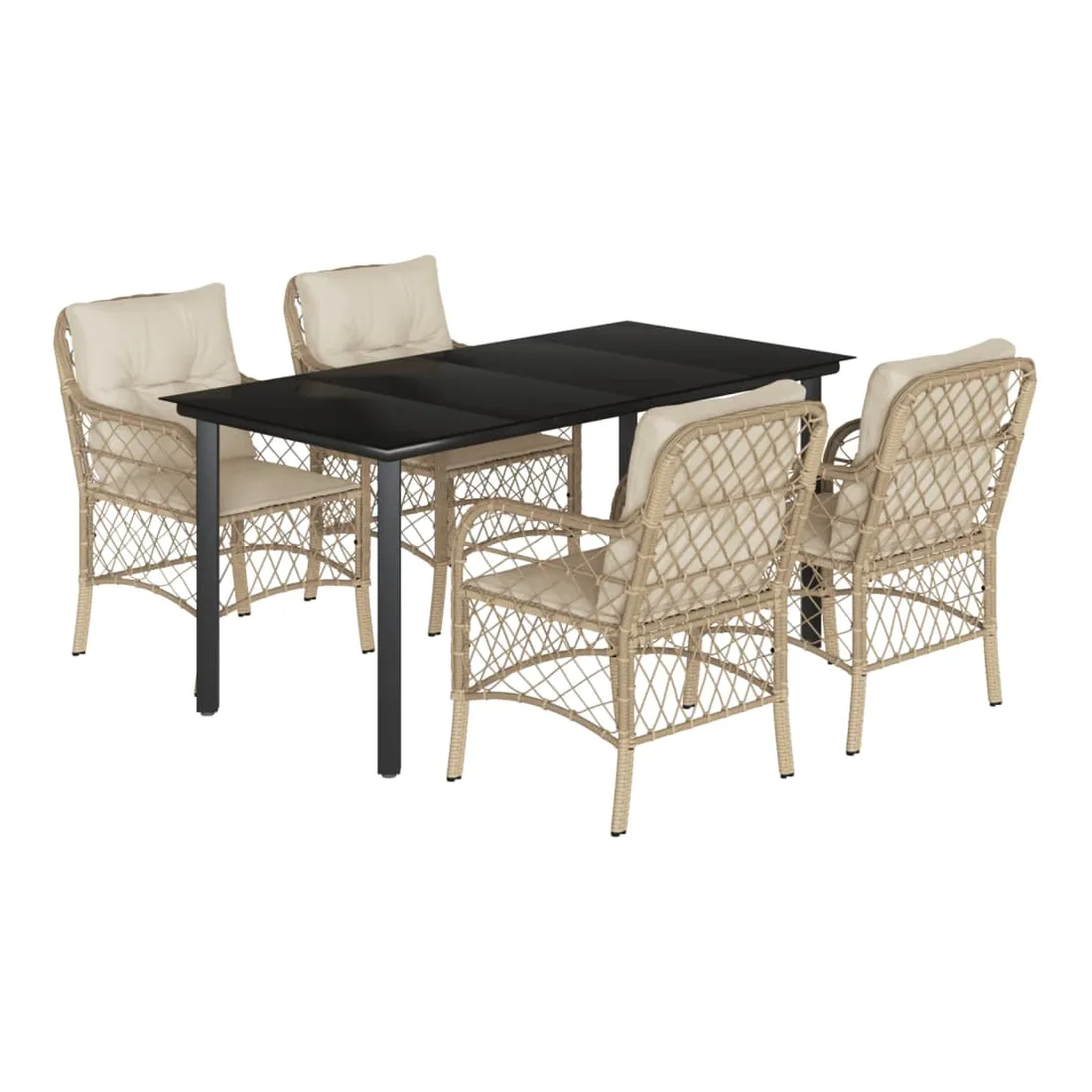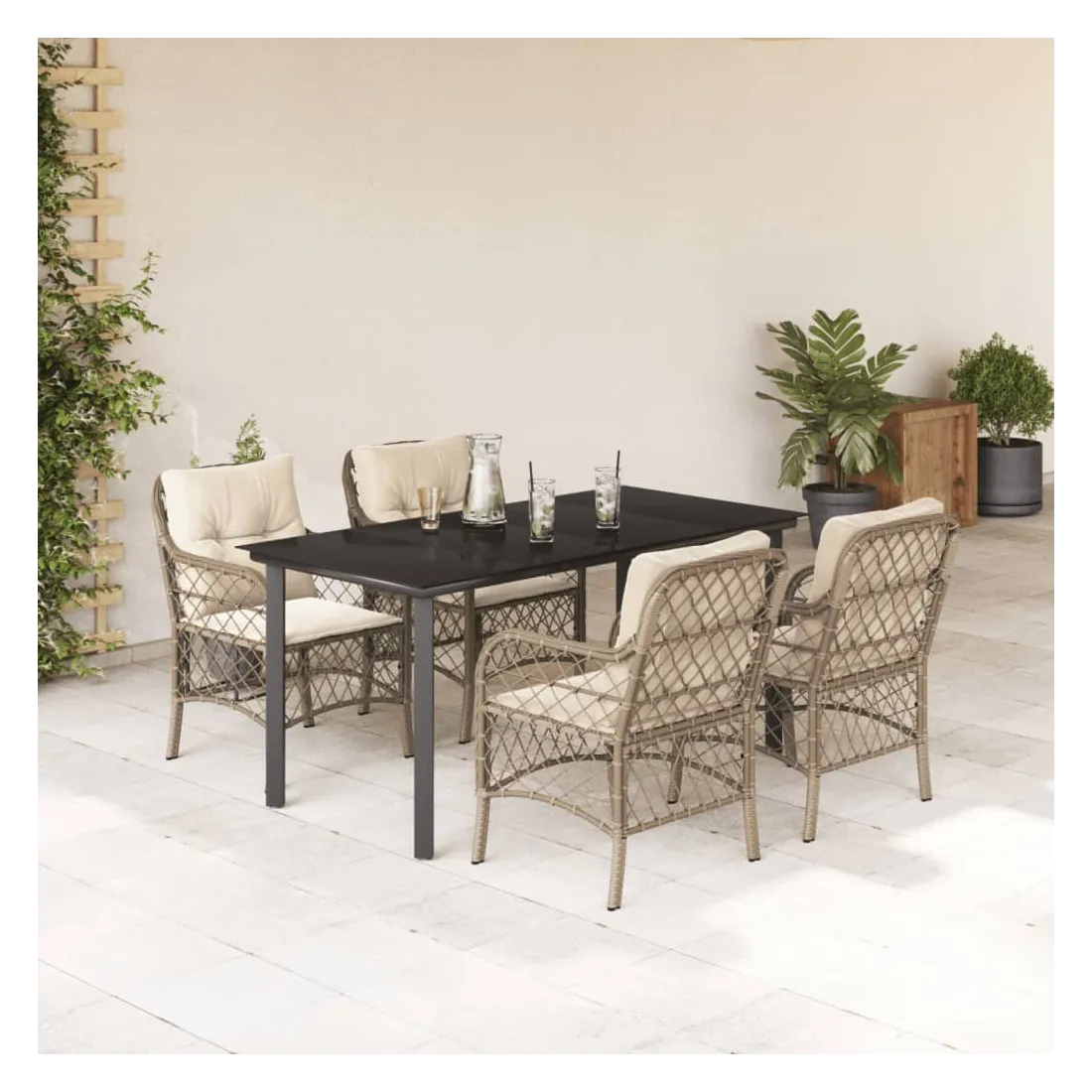 Cet ensemble de salle à manger de jardin est un excellent choix pour les repas en plein air ou pour vous détendre dans le jardin, l'arrière-cour ou le patio. Matériau durable : la résine tressée, également connue sous le nom de poly rotin, est un matériau synthétique solide et nécessitant peu d'entretien qui ressemble au rotin naturel. Il est léger, facile à nettoyer et couramment utilisé pour les meubles d'extérieur en raison de sa durabilité et de ses propriétés de résistance aux intempéries.Expérience d'assise confortable : ce mobilier d'extérieur, doté de coussins épais, offre une expérience d'assise confortable.Housse amovible et lavable : ces coussins de siège sont dotés de housses amovibles pour un lavage et un entretien faciles.Dessus en verre : le dessus de la table d'extérieur est fabriqué en verre trempé solide et durable, ce qui le rend facile à nettoyer avec un chiffon humide et ajoute une touche d'élégance à votre espace extérieur.Cadre robuste et stable : le cadre en acier enduit de poudre assure la solidité et la stabilité du meuble de jardin pour une utilisation quotidienne à l'extérieur. Bon à savoir :Pour que vos meubles d'extérieur restent beaux, nous vous recommandons de les protéger avec une housse imperméable.