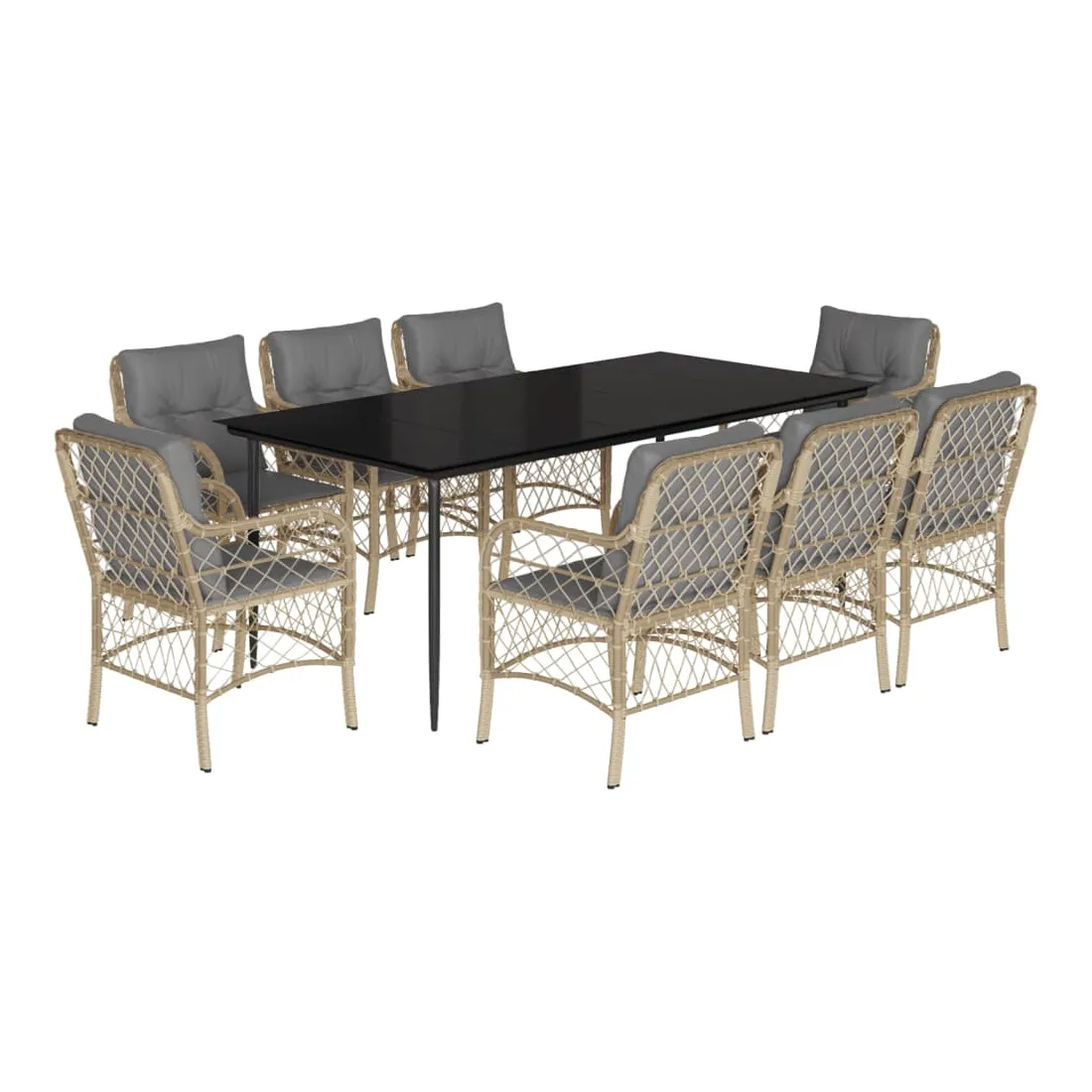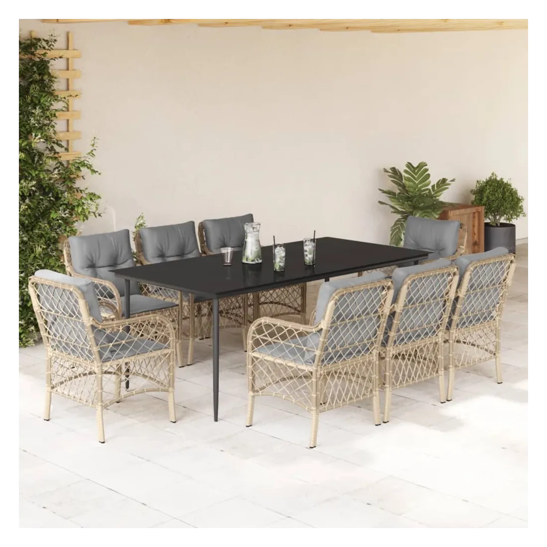 vidaXLCet ensemble de salle à manger de jardin est un excellent choix pour les repas en plein air ou pour vous détendre dans le jardin, l'arrière-cour ou le patio. Matériau durable : la résine tressée, également connue sous le nom de poly rotin, est un matériau synthétique solide et nécessitant peu d'entretien qui ressemble au rotin naturel. Il est léger, facile à nettoyer et couramment utilisé pour les meubles d'extérieur en raison de sa durabilité et de ses propriétés de résistance aux intempéries.Expérience d'assise confortable : ce mobilier d'extérieur, doté de coussins épais, offre une expérience d'assise confortable.Housse amovible et lavable : ces coussins de siège sont dotés de housses amovibles pour un lavage et un entretien faciles.Dessus en verre : le dessus de la table d'extérieur est fabriqué en verre trempé solide et durable, ce qui le rend facile à nettoyer avec un chiffon humide et ajoute une touche d'élégance à votre espace extérieur.Cadre robuste et stable : le cadre en acier enduit de poudre assure la solidité et la stabilité du meuble de jardin pour une utilisation quotidienne à l'extérieur. Bon à savoir :Pour que vos meubles d'extérieur restent beaux, nous vous recommandons de les protéger avec une housse imperméable.