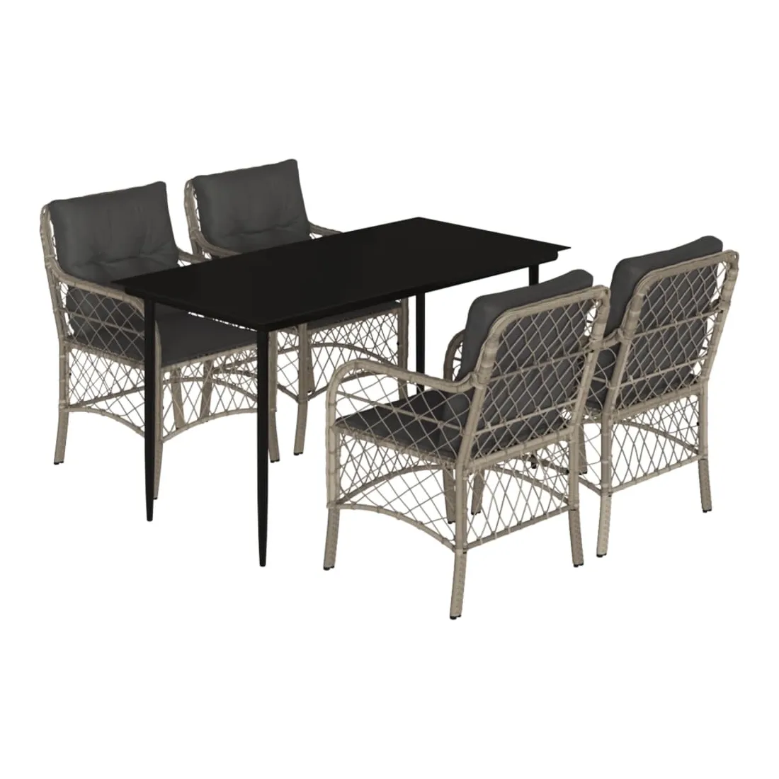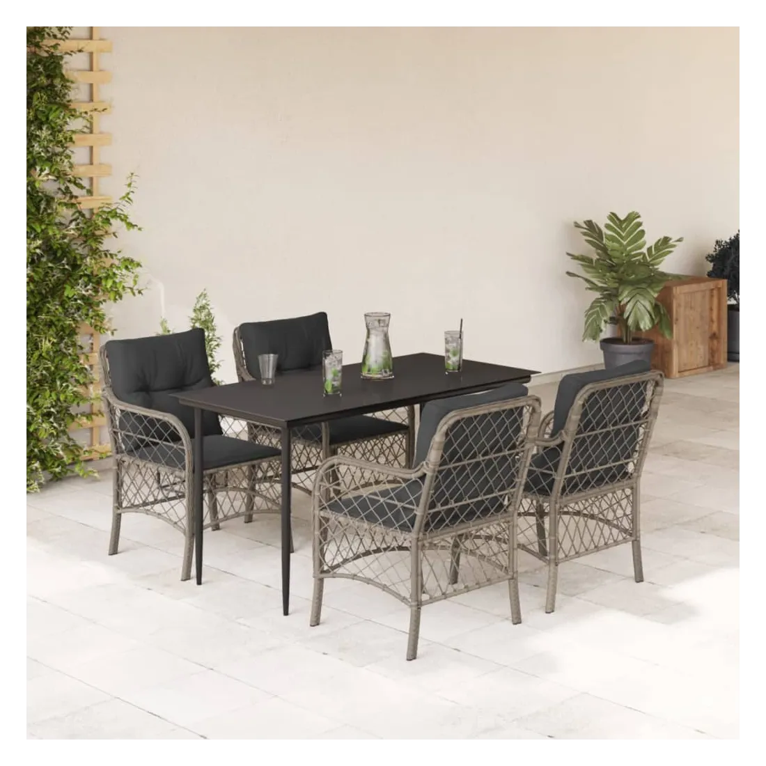 Cet ensemble de salle à manger de jardin est un excellent choix pour les repas en plein air ou pour vous détendre dans le jardin, l'arrière-cour ou le patio. Matériau durable : la résine tressée, également connue sous le nom de poly rotin, est un matériau synthétique solide et nécessitant peu d'entretien qui ressemble au rotin naturel. Il est léger, facile à nettoyer et couramment utilisé pour les meubles d'extérieur en raison de sa durabilité et de ses propriétés de résistance aux intempéries.Expérience d'assise confortable : ce mobilier d'extérieur, doté de coussins épais, offre une expérience d'assise confortable.Housse amovible et lavable : ces coussins de siège sont dotés de housses amovibles pour un lavage et un entretien faciles.Dessus en verre : le dessus de la table d'extérieur est fabriqué en verre trempé solide et durable, ce qui le rend facile à nettoyer avec un chiffon humide et ajoute une touche d'élégance à votre espace extérieur.Cadre robuste et stable : le cadre en acier enduit de poudre assure la solidité et la stabilité du meuble de jardin pour une utilisation quotidienne à l'extérieur. Bon à savoir :Pour que vos meubles d'extérieur restent beaux, nous vous recommandons de les protéger avec une housse imperméable.