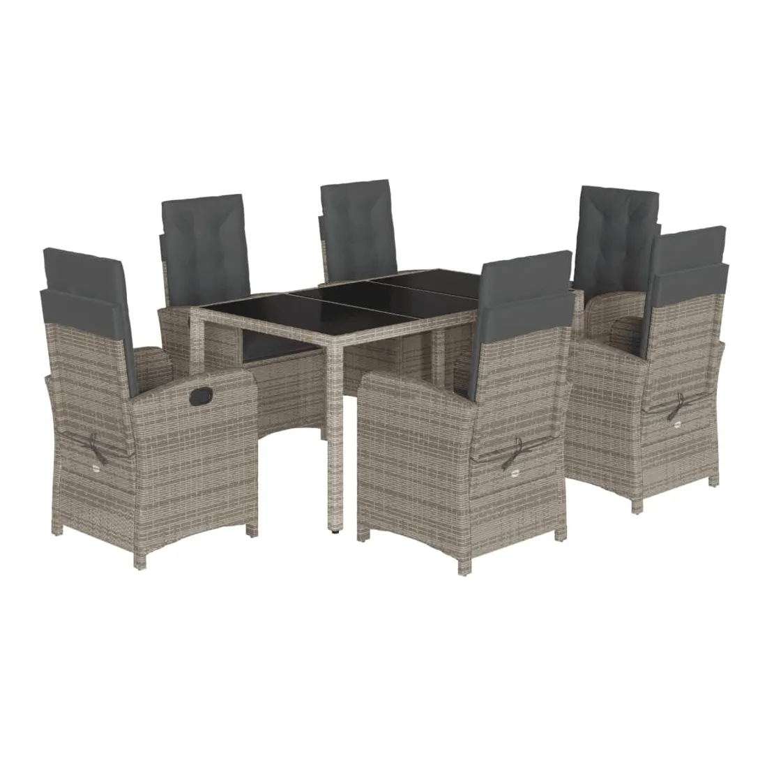 Cet ensemble de salle à manger de jardin est un excellent choix pour les repas en plein air ou pour vous détendre dans le jardin, dans l'arrière-cour ou sur la terrasse. Matériau durable : la résine tressée, également connue sous le nom de poly rotin, est un matériau synthétique solide et nécessitant peu d'entretien qui ressemble au rotin naturel. Il est léger, facile à nettoyer et couramment utilisé pour les meubles d'extérieur en raison de sa durabilité et de ses propriétés de résistance aux intempéries.Dossier réglable : ce siège de jardin est doté d'une poignée. Vous pouvez régler le dossier dans n'importe quelle position en tirant sur la poignée et le remettre rapidement dans sa position initiale.Expérience d'assise confortable : ce mobilier d'extérieur, doté de coussins épais, offre une expérience d'assise confortable.Housse amovible et lavable : ces coussins de siège sont dotés de housses amovibles pour un lavage et un entretien faciles. Les coussins de dossier ont un rabat à l'arrière pour une fixation facile aux dossiers.Dessus en verre : le dessus de la table d'extérieur est fabriqué en verre trempé solide et durable, ce qui le rend facile à nettoyer avec un chiffon humide et ajoute une touche d'élégance à votre espace extérieur. Bon à savoir :Pour que vos meubles d'extérieur restent beaux, nous vous recommandons de les protéger avec une housse imperméable.