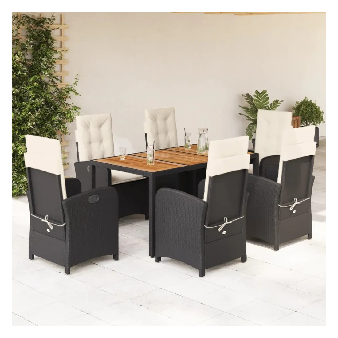 Cet ensemble de salle à manger de jardin est un excellent choix pour les repas en plein air ou pour vous détendre dans le jardin, dans l'arrière-cour ou sur la terrasse. Matériau durable : la résine tressée, également connue sous le nom de poly rotin, est un matériau synthétique solide et nécessitant peu d'entretien qui ressemble au rotin naturel. Il est léger, facile à nettoyer et couramment utilisé pour les meubles d'extérieur en raison de sa durabilité et de ses propriétés de résistance aux intempéries.Dossier réglable : ce siège de jardin est doté d'une poignée. Vous pouvez régler le dossier dans n'importe quelle position en tirant sur la poignée et le remettre rapidement dans sa position initiale.Expérience d'assise confortable : ce mobilier d'extérieur, doté de coussins épais, offre une expérience d'assise confortable.Housse amovible et lavable : ces coussins de siège sont dotés de housses amovibles pour un lavage et un entretien faciles. Les coussins de dossier ont un rabat à l'arrière pour une fixation facile aux dossiers.Dessus en verre : le dessus de la table d'extérieur est fabriqué en verre trempé solide et durable, ce qui le rend facile à nettoyer avec un chiffon humide et ajoute une touche d'élégance à votre espace extérieur. Bon à savoir :Pour que vos meubles d'extérieur restent beaux, nous vous recommandons de les protéger avec une housse imperméable.