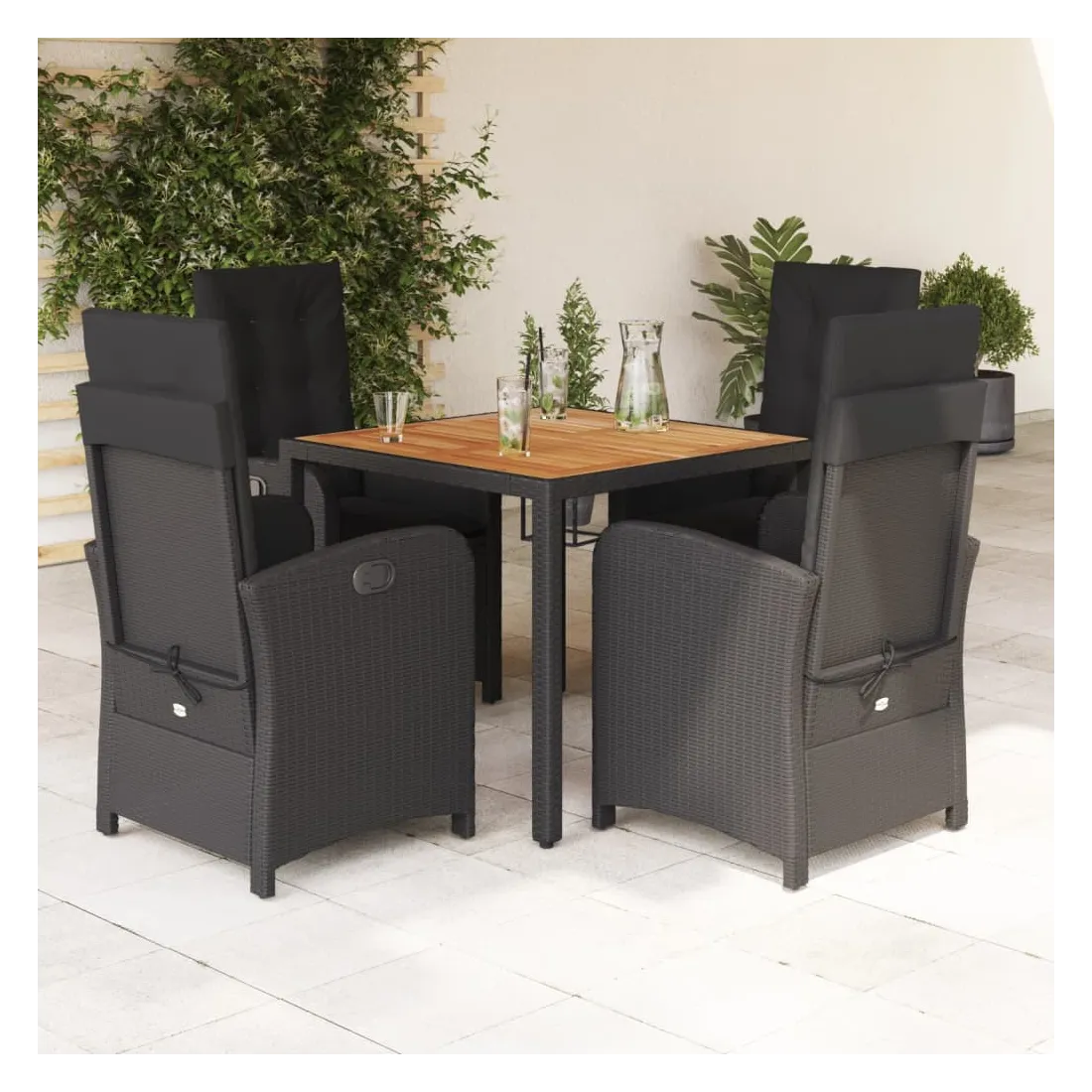 - Matériau : résine tressée, acier enduit de poudre, bois d'acacia massif avec finition à l'huile