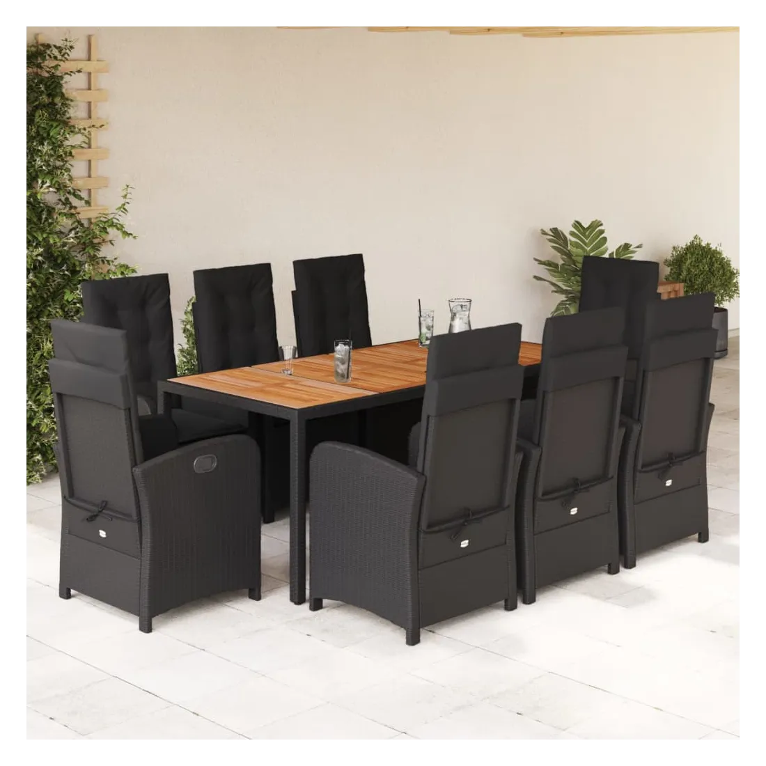 - Matériau : résine tressée, acier enduit de poudre, bois d'acacia massif avec finition à l'huile