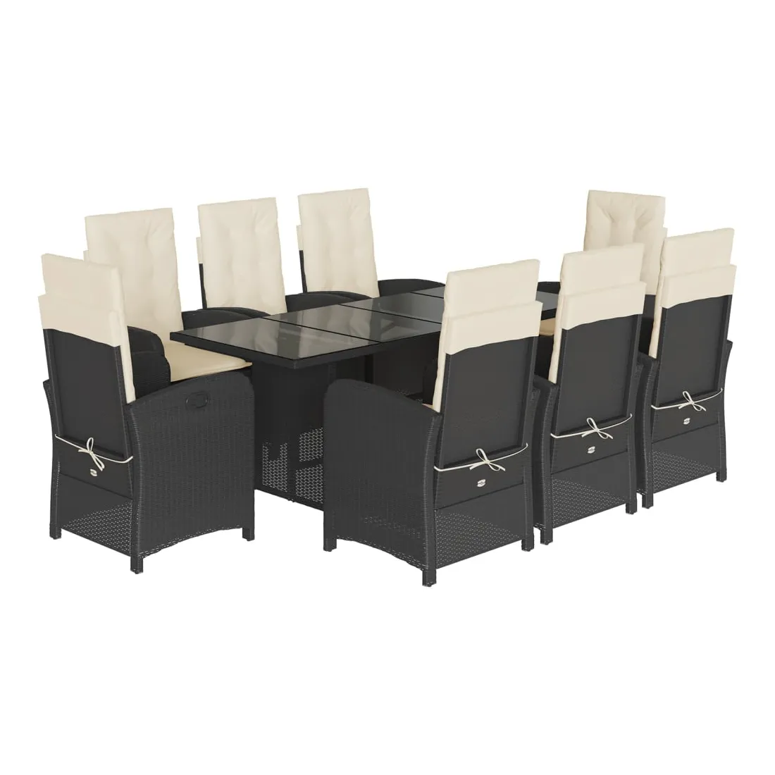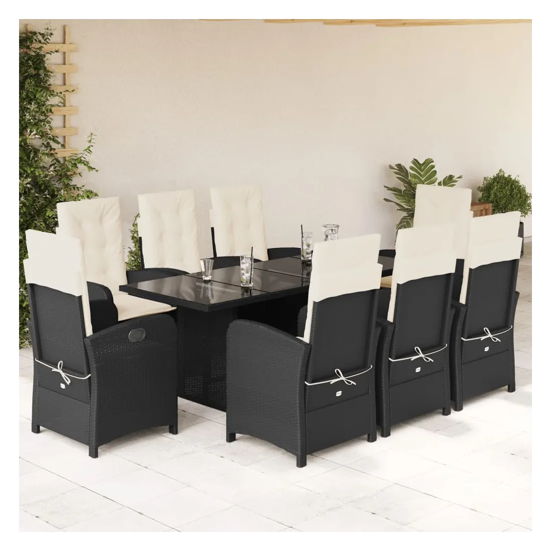 Cet ensemble de salle à manger de jardin est un excellent choix pour les repas en plein air ou pour vous détendre dans le jardin, dans l'arrière-cour ou sur la terrasse. Matériau durable : la résine tressée, également connue sous le nom de poly rotin, est un matériau synthétique solide et nécessitant peu d'entretien qui ressemble au rotin naturel. Il est léger, facile à nettoyer et couramment utilisé pour les meubles d'extérieur en raison de sa durabilité et de ses propriétés de résistance aux intempéries.Dossier réglable : ce siège de jardin est doté d'une poignée. Vous pouvez régler le dossier dans n'importe quelle position en tirant sur la poignée et le remettre rapidement dans sa position initiale.Expérience d'assise confortable : ce mobilier d'extérieur, doté de coussins épais, offre une expérience d'assise confortable.Housse amovible et lavable : ces coussins de siège sont dotés de housses amovibles pour un lavage et un entretien faciles. Les coussins de dossier ont un rabat à l'arrière pour une fixation facile aux dossiers.Dessus en verre : le dessus de la table d'extérieur est fabriqué en verre trempé solide et durable, ce qui le rend facile à nettoyer avec un chiffon humide et ajoute une touche d'élégance à votre espace extérieur. Bon à savoir :Pour que vos meubles d'extérieur restent beaux, nous vous recommandons de les protéger avec une housse imperméable.