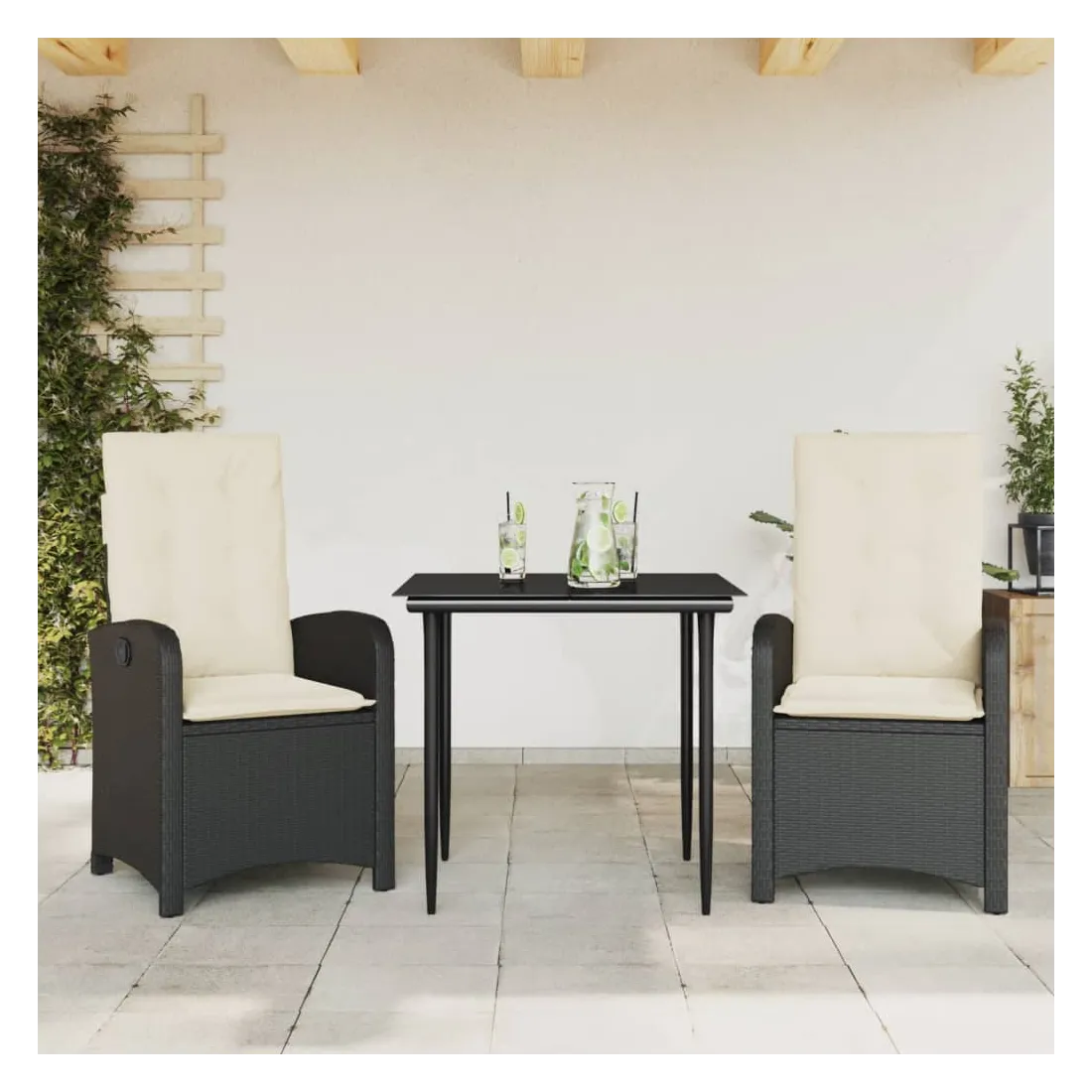 Cet ensemble de salle à manger de jardin est un excellent choix pour les repas en plein air ou pour vous détendre dans le jardin, dans l'arrière-cour ou sur la terrasse. Matériau durable : la résine tressée, également connue sous le nom de poly rotin, est un matériau synthétique solide et nécessitant peu d'entretien qui ressemble au rotin naturel. Il est léger, facile à nettoyer et couramment utilisé pour les meubles d'extérieur en raison de sa durabilité et de ses propriétés de résistance aux intempéries.Dossier réglable : ce siège de jardin est doté d'une poignée. Vous pouvez régler le dossier dans n'importe quelle position en tirant sur la poignée et le remettre rapidement dans sa position initiale.Expérience d'assise confortable : ce mobilier d'extérieur, doté de coussins épais, offre une expérience d'assise confortable.Housse amovible et lavable : ces coussins de siège sont dotés de housses amovibles pour un lavage et un entretien faciles. Les coussins de dossier ont un rabat à l'arrière pour une fixation facile aux dossiers.Dessus en verre : le dessus de la table d'extérieur est fabriqué en verre trempé solide et durable, ce qui le rend facile à nettoyer avec un chiffon humide et ajoute une touche d'élégance à votre espace extérieur. Bon à savoir :Pour que vos meubles d'extérieur restent beaux, nous vous recommandons de les protéger avec une housse imperméable.