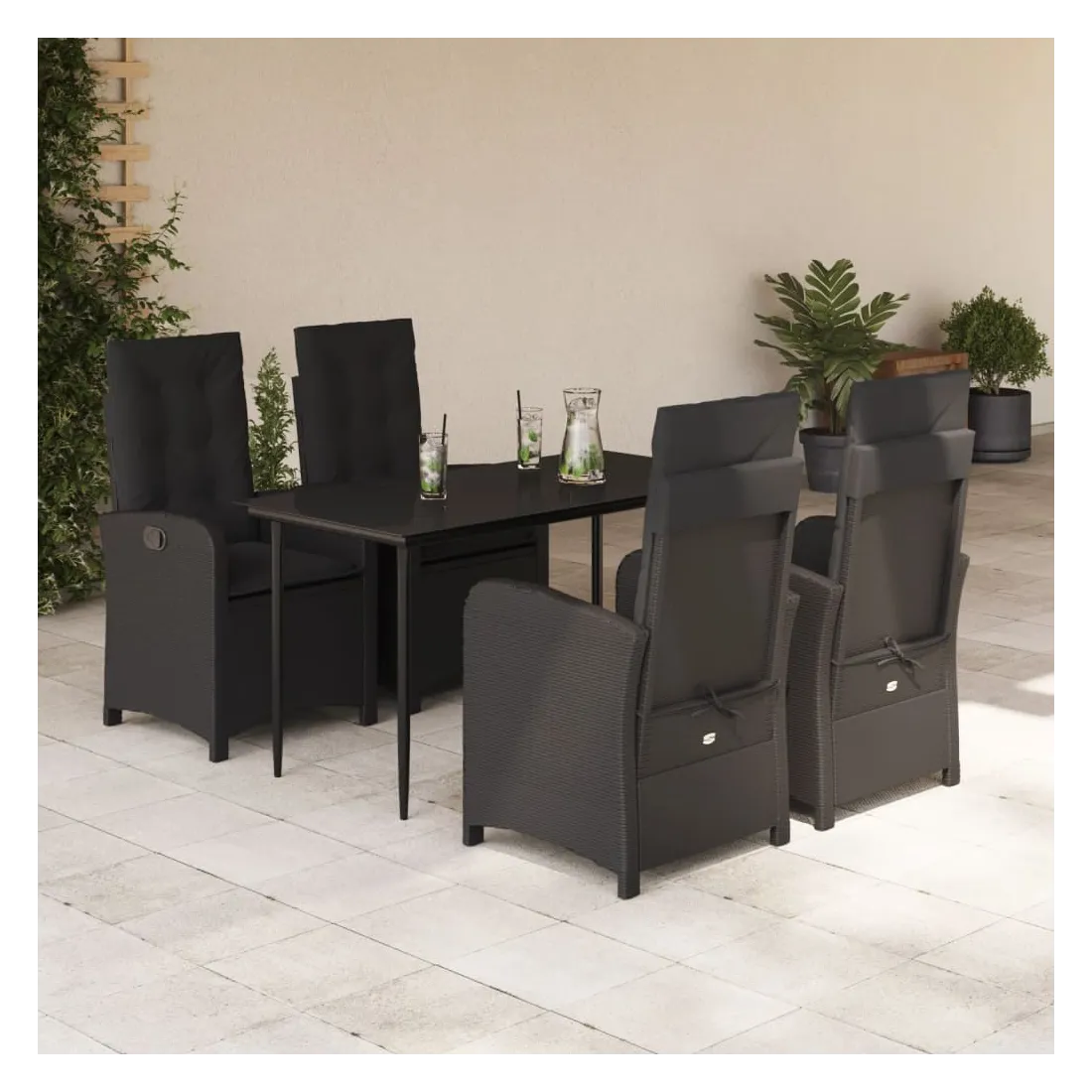 Cet ensemble de salle à manger de jardin est un excellent choix pour les repas en plein air ou pour vous détendre dans le jardin, dans l'arrière-cour ou sur la terrasse. Matériau durable : la résine tressée, également connue sous le nom de poly rotin, est un matériau synthétique solide et nécessitant peu d'entretien qui ressemble au rotin naturel. Il est léger, facile à nettoyer et couramment utilisé pour les meubles d'extérieur en raison de sa durabilité et de ses propriétés de résistance aux intempéries.Dossier réglable : ce siège de jardin est doté d'une poignée. Vous pouvez régler le dossier dans n'importe quelle position en tirant sur la poignée et le remettre rapidement dans sa position initiale.Expérience d'assise confortable : ce mobilier d'extérieur, doté de coussins épais, offre une expérience d'assise confortable.Housse amovible et lavable : ces coussins de siège sont dotés de housses amovibles pour un lavage et un entretien faciles. Les coussins de dossier ont un rabat à l'arrière pour une fixation facile aux dossiers.Dessus en verre : le dessus de la table d'extérieur est fabriqué en verre trempé solide et durable, ce qui le rend facile à nettoyer avec un chiffon humide et ajoute une touche d'élégance à votre espace extérieur. Bon à savoir :Pour que vos meubles d'extérieur restent beaux, nous vous recommandons de les protéger avec une housse imperméable.