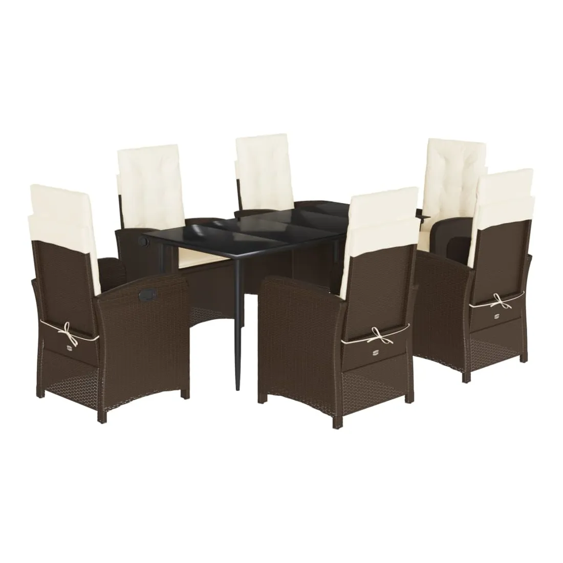 Cet ensemble de salle à manger de jardin est un excellent choix pour les repas en plein air ou pour vous détendre dans le jardin, dans l'arrière-cour ou sur la terrasse. Matériau durable : la résine tressée, également connue sous le nom de poly rotin, est un matériau synthétique solide et nécessitant peu d'entretien qui ressemble au rotin naturel. Il est léger, facile à nettoyer et couramment utilisé pour les meubles d'extérieur en raison de sa durabilité et de ses propriétés de résistance aux intempéries.Dossier réglable : ce siège de jardin est doté d'une poignée. Vous pouvez régler le dossier dans n'importe quelle position en tirant sur la poignée et le remettre rapidement dans sa position initiale.Expérience d'assise confortable : ce mobilier d'extérieur, doté de coussins épais, offre une expérience d'assise confortable.Housse amovible et lavable : ces coussins de siège sont dotés de housses amovibles pour un lavage et un entretien faciles. Les coussins de dossier ont un rabat à l'arrière pour une fixation facile aux dossiers.Dessus en verre : le dessus de la table d'extérieur est fabriqué en verre trempé solide et durable, ce qui le rend facile à nettoyer avec un chiffon humide et ajoute une touche d'élégance à votre espace extérieur. Bon à savoir :Pour que vos meubles d'extérieur restent beaux, nous vous recommandons de les protéger avec une housse imperméable.