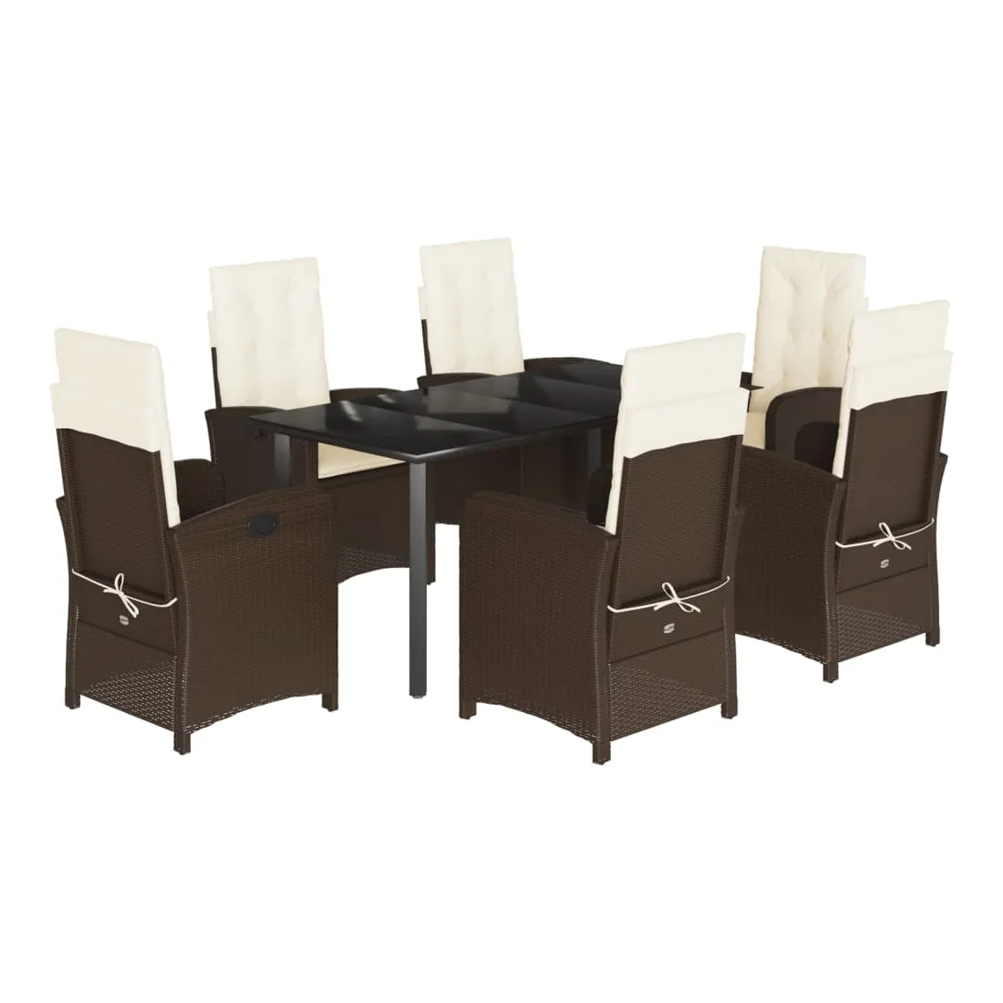 Cet ensemble de salle à manger de jardin est un excellent choix pour les repas en plein air ou pour vous détendre dans le jardin, dans l'arrière-cour ou sur la terrasse. Matériau durable : la résine tressée, également connue sous le nom de poly rotin, est un matériau synthétique solide et nécessitant peu d'entretien qui ressemble au rotin naturel. Il est léger, facile à nettoyer et couramment utilisé pour les meubles d'extérieur en raison de sa durabilité et de ses propriétés de résistance aux intempéries.Dossier réglable : ce siège de jardin est doté d'une poignée. Vous pouvez régler le dossier dans n'importe quelle position en tirant sur la poignée et le remettre rapidement dans sa position initiale.Expérience d'assise confortable : ce mobilier d'extérieur, doté de coussins épais, offre une expérience d'assise confortable.Housse amovible et lavable : ces coussins de siège sont dotés de housses amovibles pour un lavage et un entretien faciles. Les coussins de dossier ont un rabat à l'arrière pour une fixation facile aux dossiers.Dessus en verre : le dessus de la table d'extérieur est fabriqué en verre trempé solide et durable, ce qui le rend facile à nettoyer avec un chiffon humide et ajoute une touche d'élégance à votre espace extérieur. Bon à savoir :Pour que vos meubles d'extérieur restent beaux, nous vous recommandons de les protéger avec une housse imperméable.