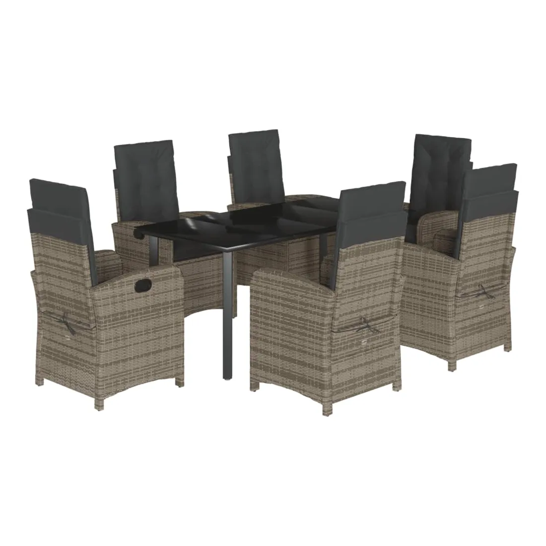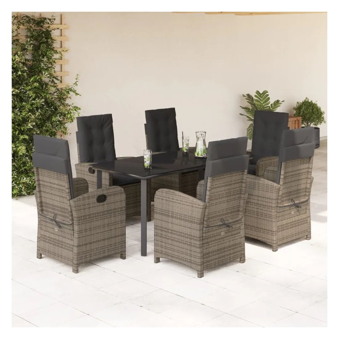 Cet ensemble de salle à manger de jardin est un excellent choix pour les repas en plein air ou pour vous détendre dans le jardin, dans l'arrière-cour ou sur la terrasse. Matériau durable : la résine tressée, également connue sous le nom de poly rotin, est un matériau synthétique solide et nécessitant peu d'entretien qui ressemble au rotin naturel. Il est léger, facile à nettoyer et couramment utilisé pour les meubles d'extérieur en raison de sa durabilité et de ses propriétés de résistance aux intempéries.Dossier réglable : ce siège de jardin est doté d'une poignée. Vous pouvez régler le dossier dans n'importe quelle position en tirant sur la poignée et le remettre rapidement dans sa position initiale.Expérience d'assise confortable : ce mobilier d'extérieur, doté de coussins épais, offre une expérience d'assise confortable.Housse amovible et lavable : ces coussins de siège sont dotés de housses amovibles pour un lavage et un entretien faciles. Les coussins de dossier ont un rabat à l'arrière pour une fixation facile aux dossiers.Dessus en verre : le dessus de la table d'extérieur est fabriqué en verre trempé solide et durable, ce qui le rend facile à nettoyer avec un chiffon humide et ajoute une touche d'élégance à votre espace extérieur. Bon à savoir :Pour que vos meubles d'extérieur restent beaux, nous vous recommandons de les protéger avec une housse imperméable.