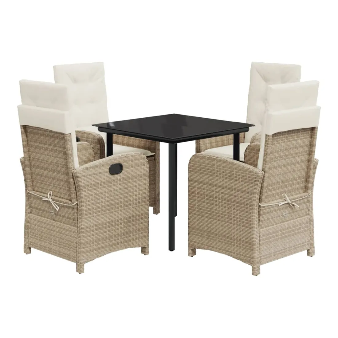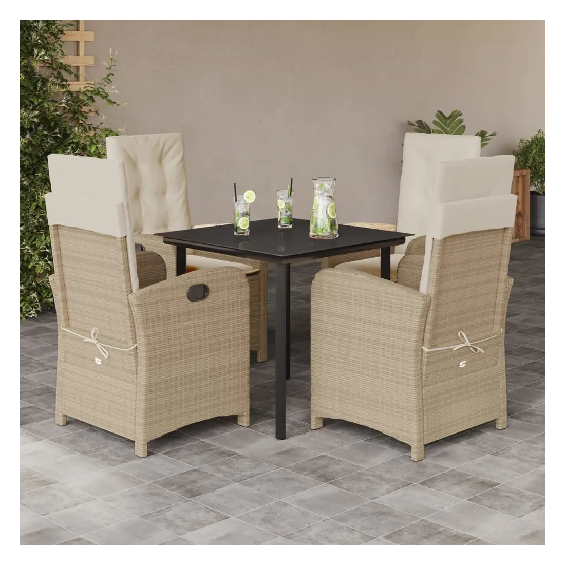 Cet ensemble de salle à manger de jardin est un excellent choix pour les repas en plein air ou pour vous détendre dans le jardin, dans l'arrière-cour ou sur la terrasse. Matériau durable : la résine tressée, également connue sous le nom de poly rotin, est un matériau synthétique solide et nécessitant peu d'entretien qui ressemble au rotin naturel. Il est léger, facile à nettoyer et couramment utilisé pour les meubles d'extérieur en raison de sa durabilité et de ses propriétés de résistance aux intempéries.Dossier réglable : ce siège de jardin est doté d'une poignée. Vous pouvez régler le dossier dans n'importe quelle position en tirant sur la poignée et le remettre rapidement dans sa position initiale.Expérience d'assise confortable : ce mobilier d'extérieur, doté de coussins épais, offre une expérience d'assise confortable.Housse amovible et lavable : ces coussins de siège sont dotés de housses amovibles pour un lavage et un entretien faciles. Les coussins de dossier ont un rabat à l'arrière pour une fixation facile aux dossiers.Dessus en verre : le dessus de la table d'extérieur est fabriqué en verre trempé solide et durable, ce qui le rend facile à nettoyer avec un chiffon humide et ajoute une touche d'élégance à votre espace extérieur. Bon à savoir :Pour que vos meubles d'extérieur restent beaux, nous vous recommandons de les protéger avec une housse imperméable.