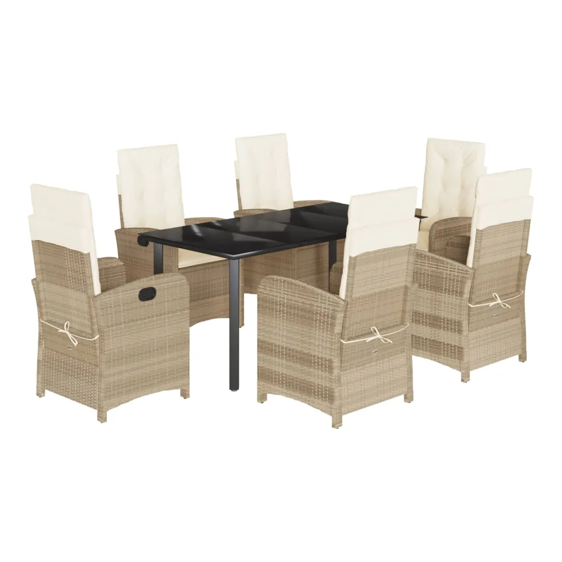 Cet ensemble de salle à manger de jardin est un excellent choix pour les repas en plein air ou pour vous détendre dans le jardin, dans l'arrière-cour ou sur la terrasse. Matériau durable : la résine tressée, également connue sous le nom de poly rotin, est un matériau synthétique solide et nécessitant peu d'entretien qui ressemble au rotin naturel. Il est léger, facile à nettoyer et couramment utilisé pour les meubles d'extérieur en raison de sa durabilité et de ses propriétés de résistance aux intempéries.Dossier réglable : ce siège de jardin est doté d'une poignée. Vous pouvez régler le dossier dans n'importe quelle position en tirant sur la poignée et le remettre rapidement dans sa position initiale.Expérience d'assise confortable : ce mobilier d'extérieur, doté de coussins épais, offre une expérience d'assise confortable.Housse amovible et lavable : ces coussins de siège sont dotés de housses amovibles pour un lavage et un entretien faciles. Les coussins de dossier ont un rabat à l'arrière pour une fixation facile aux dossiers.Dessus en verre : le dessus de la table d'extérieur est fabriqué en verre trempé solide et durable, ce qui le rend facile à nettoyer avec un chiffon humide et ajoute une touche d'élégance à votre espace extérieur. Bon à savoir :Pour que vos meubles d'extérieur restent beaux, nous vous recommandons de les protéger avec une housse imperméable.