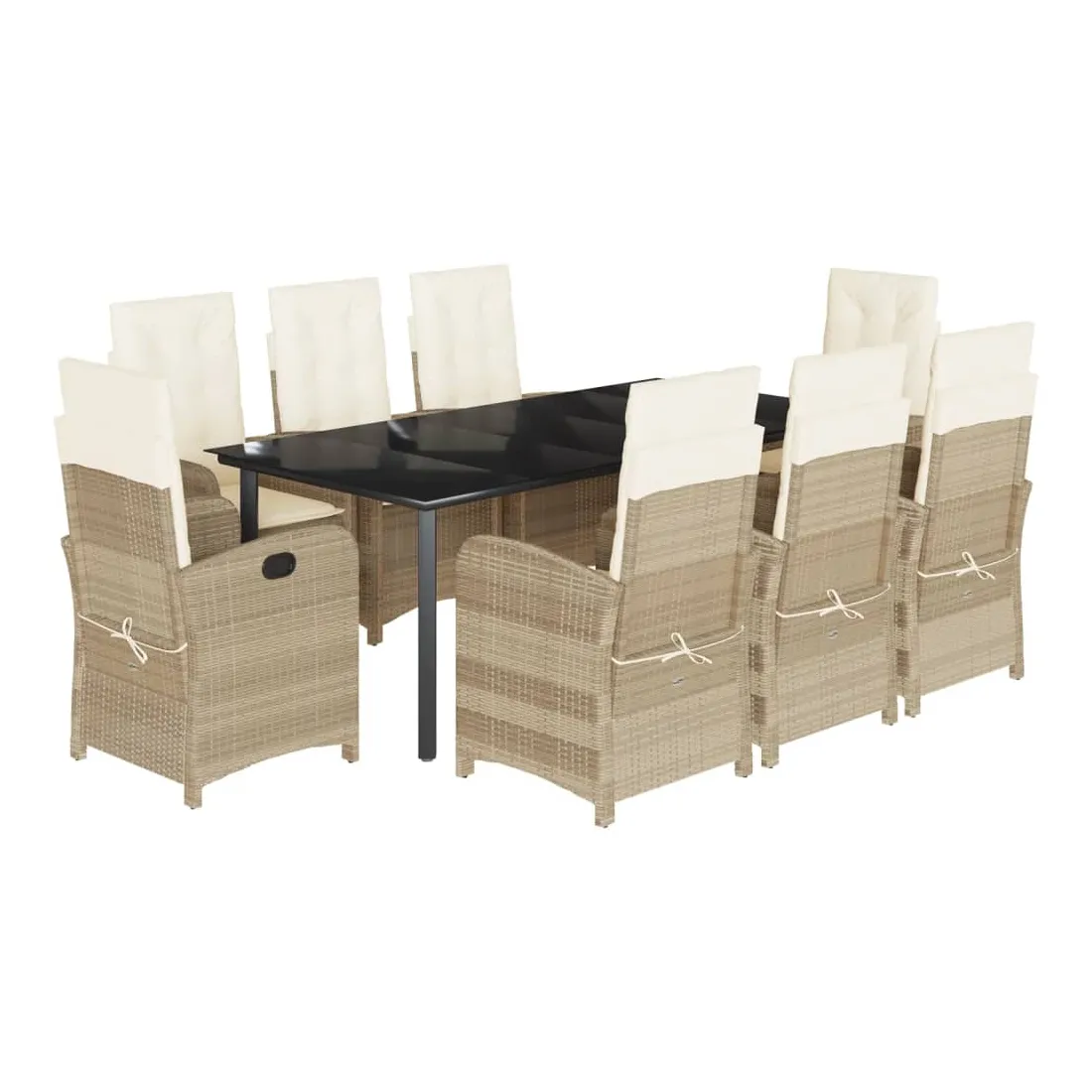 Cet ensemble de salle à manger de jardin est un excellent choix pour les repas en plein air ou pour vous détendre dans le jardin, dans l'arrière-cour ou sur la terrasse. Matériau durable : la résine tressée, également connue sous le nom de poly rotin, est un matériau synthétique solide et nécessitant peu d'entretien qui ressemble au rotin naturel. Il est léger, facile à nettoyer et couramment utilisé pour les meubles d'extérieur en raison de sa durabilité et de ses propriétés de résistance aux intempéries.Dossier réglable : ce siège de jardin est doté d'une poignée. Vous pouvez régler le dossier dans n'importe quelle position en tirant sur la poignée et le remettre rapidement dans sa position initiale.Expérience d'assise confortable : ce mobilier d'extérieur, doté de coussins épais, offre une expérience d'assise confortable.Housse amovible et lavable : ces coussins de siège sont dotés de housses amovibles pour un lavage et un entretien faciles. Les coussins de dossier ont un rabat à l'arrière pour une fixation facile aux dossiers.Dessus en verre : le dessus de la table d'extérieur est fabriqué en verre trempé solide et durable, ce qui le rend facile à nettoyer avec un chiffon humide et ajoute une touche d'élégance à votre espace extérieur. Bon à savoir :Pour que vos meubles d'extérieur restent beaux, nous vous recommandons de les protéger avec une housse imperméable.