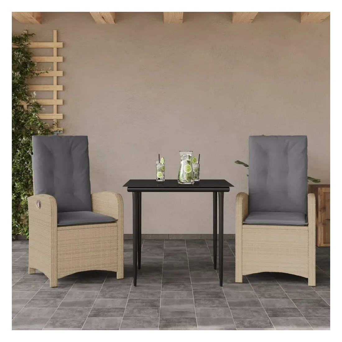 Cet ensemble de salle à manger de jardin est un excellent choix pour les repas en plein air ou pour vous détendre dans le jardin, dans l'arrière-cour ou sur la terrasse. Matériau durable : la résine tressée, également connue sous le nom de poly rotin, est un matériau synthétique solide et nécessitant peu d'entretien qui ressemble au rotin naturel. Il est léger, facile à nettoyer et couramment utilisé pour les meubles d'extérieur en raison de sa durabilité et de ses propriétés de résistance aux intempéries.Dossier réglable : ce siège de jardin est doté d'une poignée. Vous pouvez régler le dossier dans n'importe quelle position en tirant sur la poignée et le remettre rapidement dans sa position initiale.Expérience d'assise confortable : ce mobilier d'extérieur, doté de coussins épais, offre une expérience d'assise confortable.Housse amovible et lavable : ces coussins de siège sont dotés de housses amovibles pour un lavage et un entretien faciles. Les coussins de dossier ont un rabat à l'arrière pour une fixation facile aux dossiers.Dessus en verre : le dessus de la table d'extérieur est fabriqué en verre trempé solide et durable, ce qui le rend facile à nettoyer avec un chiffon humide et ajoute une touche d'élégance à votre espace extérieur. Bon à savoir :Pour que vos meubles d'extérieur restent beaux, nous vous recommandons de les protéger avec une housse imperméable.