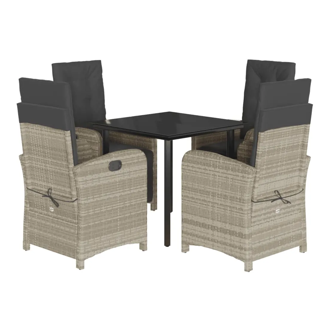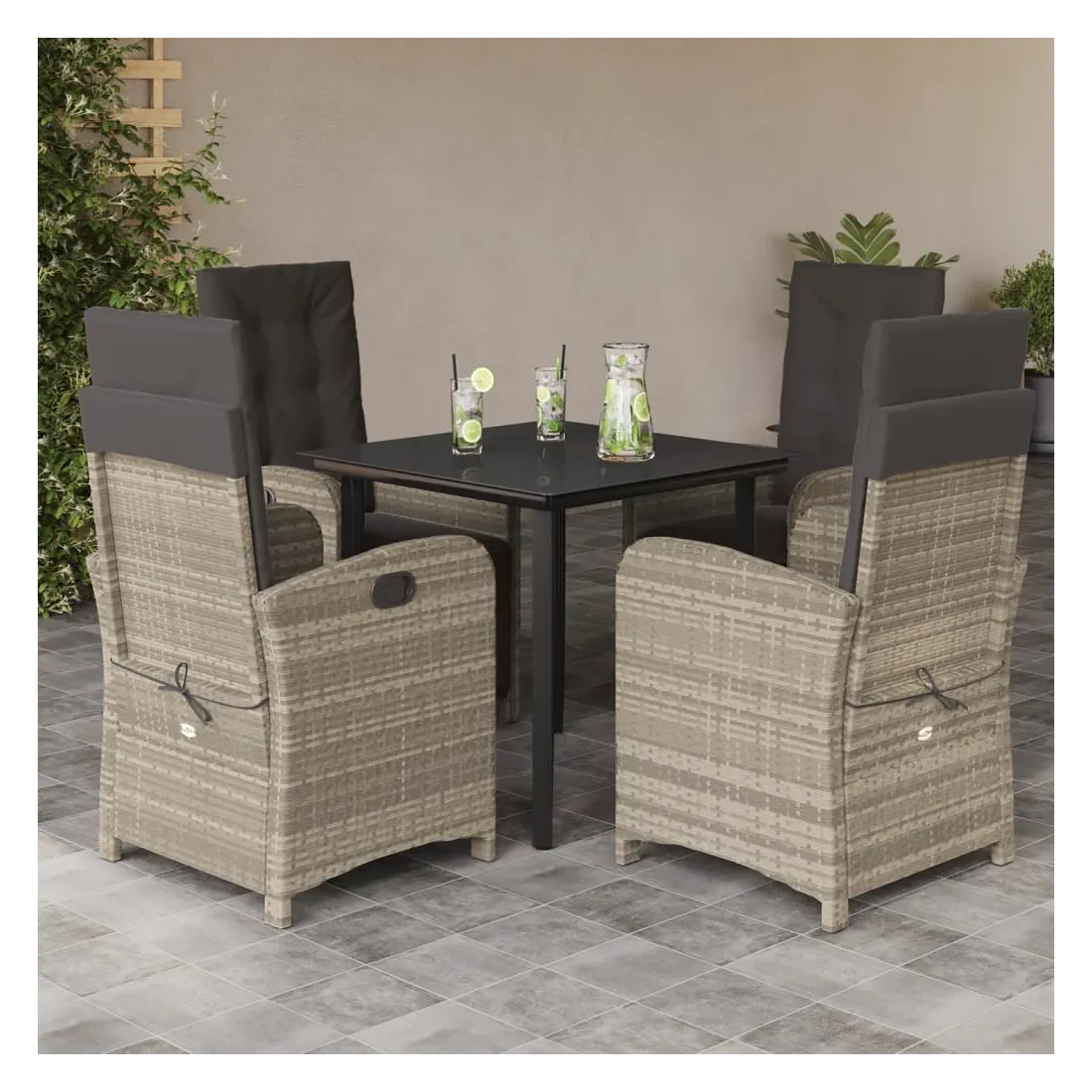 Cet ensemble de salle à manger de jardin est un excellent choix pour les repas en plein air ou pour vous détendre dans le jardin, dans l'arrière-cour ou sur la terrasse. Matériau durable : la résine tressée, également connue sous le nom de poly rotin, est un matériau synthétique solide et nécessitant peu d'entretien qui ressemble au rotin naturel. Il est léger, facile à nettoyer et couramment utilisé pour les meubles d'extérieur en raison de sa durabilité et de ses propriétés de résistance aux intempéries.Dossier réglable : ce siège de jardin est doté d'une poignée. Vous pouvez régler le dossier dans n'importe quelle position en tirant sur la poignée et le remettre rapidement dans sa position initiale.Expérience d'assise confortable : ce mobilier d'extérieur, doté de coussins épais, offre une expérience d'assise confortable.Housse amovible et lavable : ces coussins de siège sont dotés de housses amovibles pour un lavage et un entretien faciles. Les coussins de dossier ont un rabat à l'arrière pour une fixation facile aux dossiers.Dessus en verre : le dessus de la table d'extérieur est fabriqué en verre trempé solide et durable, ce qui le rend facile à nettoyer avec un chiffon humide et ajoute une touche d'élégance à votre espace extérieur. Bon à savoir :Pour que vos meubles d'extérieur restent beaux, nous vous recommandons de les protéger avec une housse imperméable.