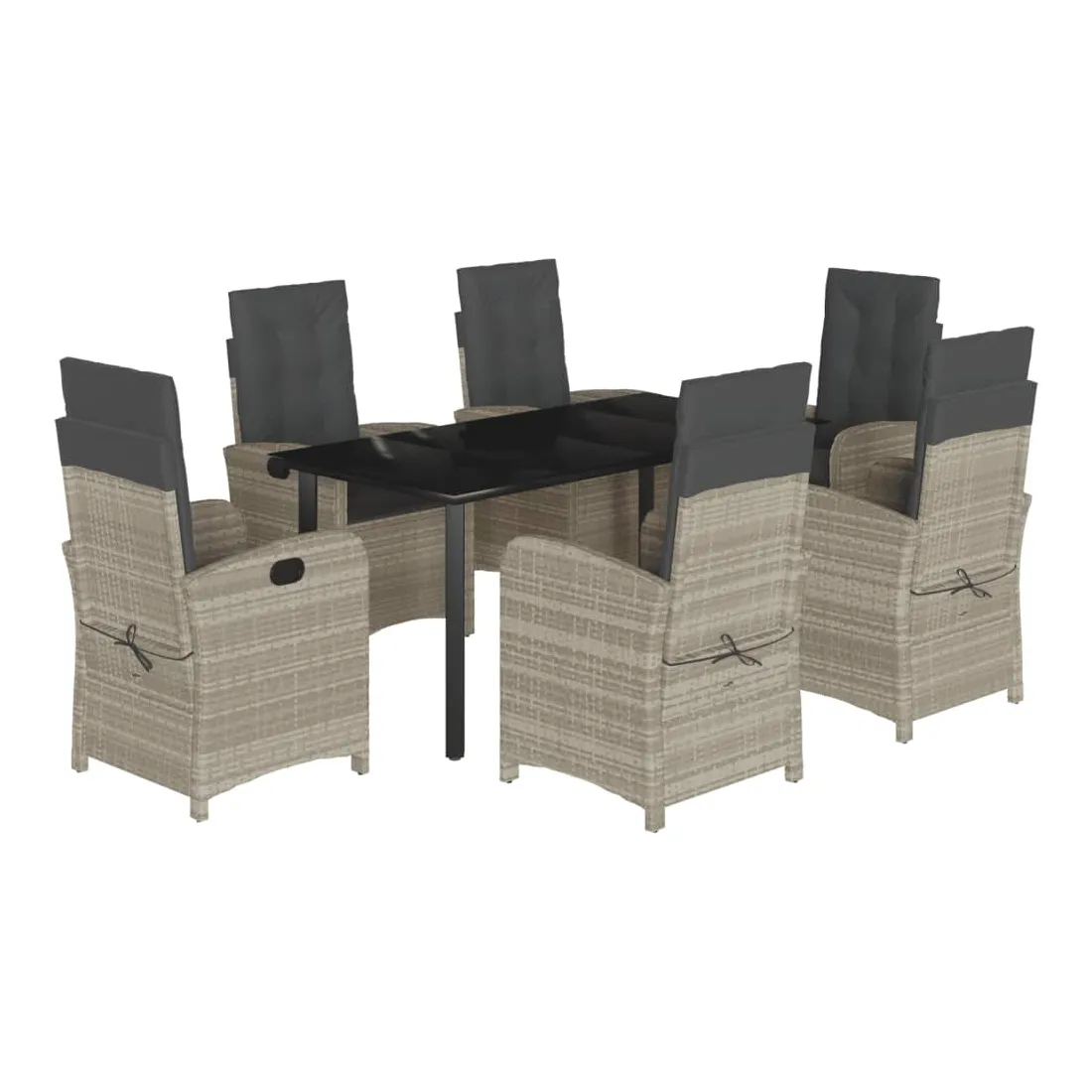 Cet ensemble de salle à manger de jardin est un excellent choix pour les repas en plein air ou pour vous détendre dans le jardin, dans l'arrière-cour ou sur la terrasse. Matériau durable : la résine tressée, également connue sous le nom de poly rotin, est un matériau synthétique solide et nécessitant peu d'entretien qui ressemble au rotin naturel. Il est léger, facile à nettoyer et couramment utilisé pour les meubles d'extérieur en raison de sa durabilité et de ses propriétés de résistance aux intempéries.Dossier réglable : ce siège de jardin est doté d'une poignée. Vous pouvez régler le dossier dans n'importe quelle position en tirant sur la poignée et le remettre rapidement dans sa position initiale.Expérience d'assise confortable : ce mobilier d'extérieur, doté de coussins épais, offre une expérience d'assise confortable.Housse amovible et lavable : ces coussins de siège sont dotés de housses amovibles pour un lavage et un entretien faciles. Les coussins de dossier ont un rabat à l'arrière pour une fixation facile aux dossiers.Dessus en verre : le dessus de la table d'extérieur est fabriqué en verre trempé solide et durable, ce qui le rend facile à nettoyer avec un chiffon humide et ajoute une touche d'élégance à votre espace extérieur. Bon à savoir :Pour que vos meubles d'extérieur restent beaux, nous vous recommandons de les protéger avec une housse imperméable.