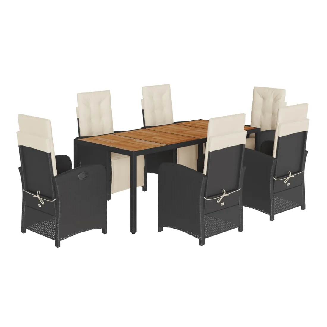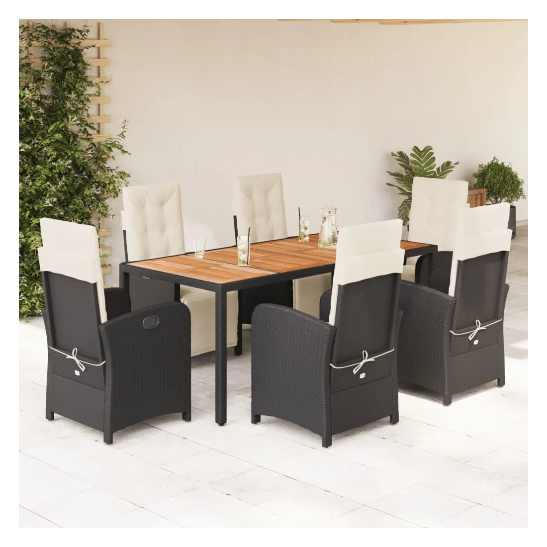 Savourez une tasse de café ou discutez avec votre famille et vos amis dans le jardin, l'arrière-cour ou sur le balcon avec cet ensemble de salle à manger de jardin confortable ! Matériau durable : la résine tressée, également connue sous le nom de poly rotin, est un matériau synthétique solide et nécessitant peu d'entretien qui ressemble au rotin naturel. Il est léger, facile à nettoyer et couramment utilisé pour les meubles d'extérieur en raison de sa durabilité et de ses propriétés de résistance aux intempéries.Dossier et repose-pied réglables : ce siège de jardin est doté d'une poignée. Vous pouvez régler le dossier et le repose-pied dans n'importe quelle position en tirant sur la poignée, et les remettre rapidement dans leur position initiale.Expérience d'assise confortable : ce mobilier d'extérieur, doté de coussins épais, offre une expérience d'assise confortable.Housse amovible et lavable : ces coussins de siège sont dotés de housses amovibles pour un lavage et un entretien faciles. Les coussins de dossier ont un rabat à l'arrière pour une fixation facile aux dossiers. Dessus stable et facile à nettoyer : cette table de jardin a un dessus en bois d'acacia robuste, durable et facile à nettoyer avec un chiffon humide. Bon à savoir :Pour que vos meubles d'extérieur restent beaux, nous vous recommandons de les protéger avec une housse imperméable.