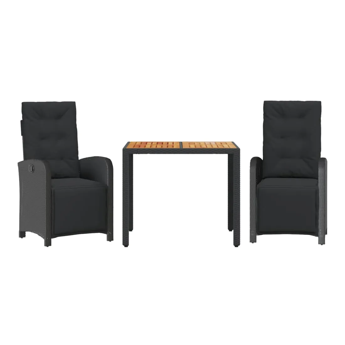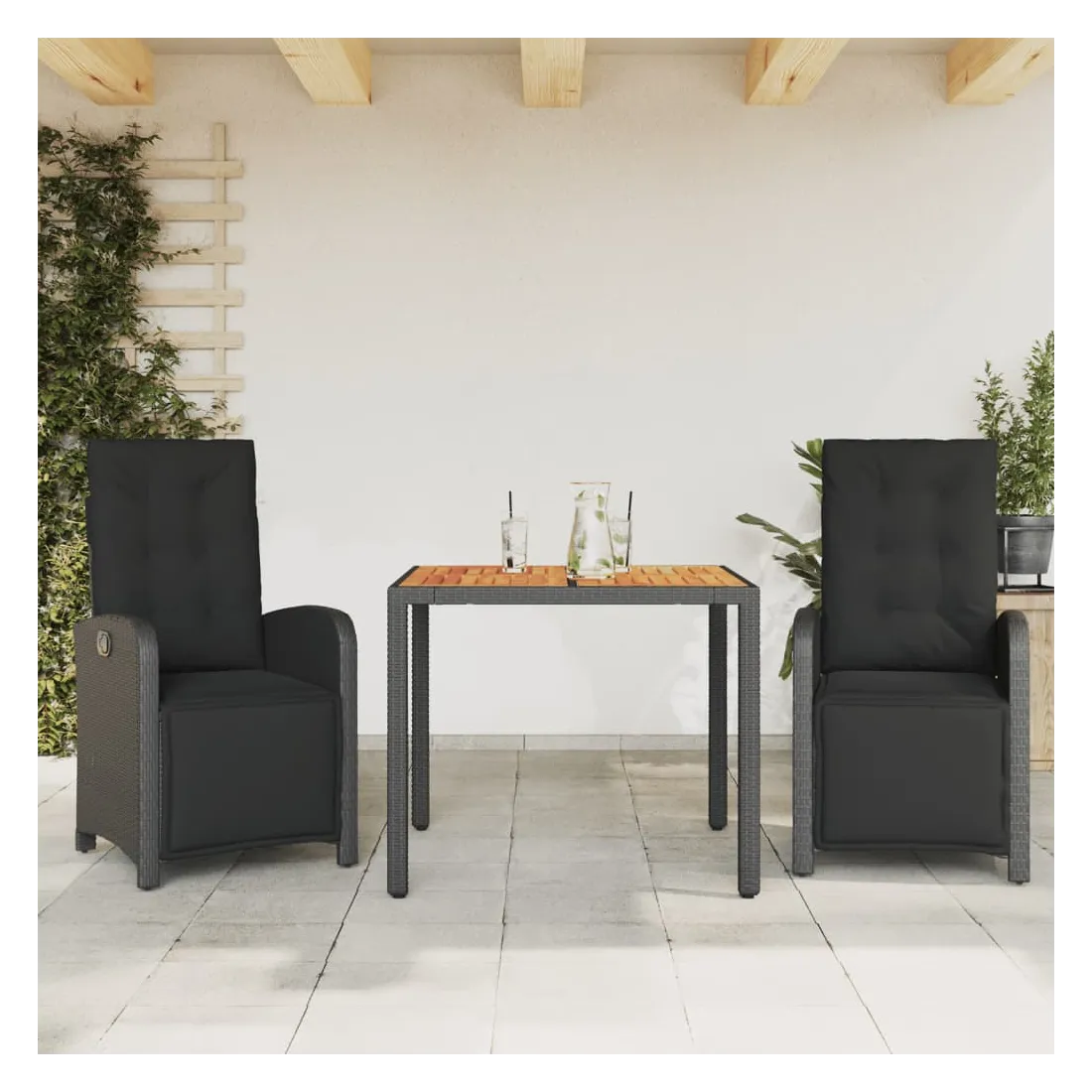 Savourez une tasse de café ou discutez avec votre famille et vos amis dans le jardin, l'arrière-cour ou sur le balcon avec cet ensemble de bistro confortable ! Matériau durable : la résine tressée, également connue sous le nom de poly rotin, est un matériau synthétique solide et nécessitant peu d'entretien qui ressemble au rotin naturel. Il est léger, facile à nettoyer et couramment utilisé pour les meubles d'extérieur en raison de sa durabilité et de ses propriétés de résistance aux intempéries.Dossier et repose-pied réglables : ce siège de jardin est doté d'une poignée. Vous pouvez régler le dossier et le repose-pied dans n'importe quelle position en tirant sur la poignée, et les remettre rapidement dans leur position initiale.Expérience d'assise confortable : ce mobilier d'extérieur, doté de coussins épais, offre une expérience d'assise confortable.Housse amovible et lavable : ces coussins de siège sont dotés de housses amovibles pour un lavage et un entretien faciles. Les coussins de dossier ont un rabat à l'arrière pour une fixation facile aux dossiers.Dessus stable et facile à nettoyer : cette table de jardin a un dessus en bois d'acacia robuste, durable et facile à nettoyer avec un chiffon humide. Bon à savoir :Pour que vos meubles d'extérieur restent beaux, nous vous recommandons de les protéger avec une housse imperméable.