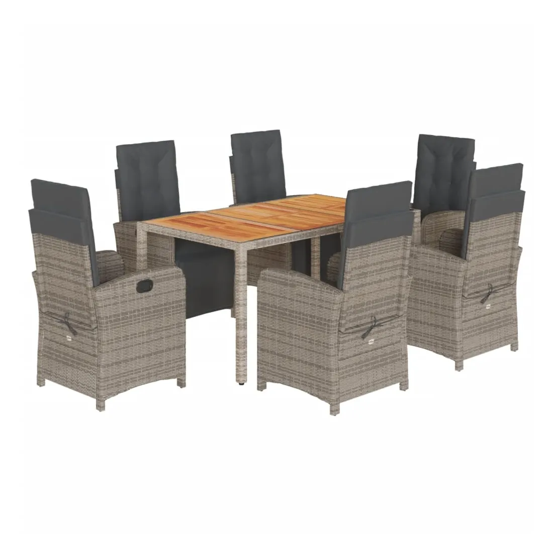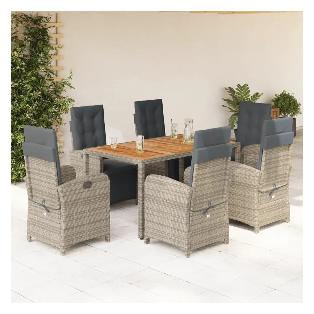 Savourez une tasse de café ou discutez avec votre famille et vos amis dans le jardin, l'arrière-cour ou sur le balcon avec cet ensemble de salle à manger de jardin confortable ! Matériau durable : la résine tressée, également connue sous le nom de poly rotin, est un matériau synthétique solide et nécessitant peu d'entretien qui ressemble au rotin naturel. Il est léger, facile à nettoyer et couramment utilisé pour les meubles d'extérieur en raison de sa durabilité et de ses propriétés de résistance aux intempéries.Dossier et repose-pied réglables : ce siège de jardin est doté d'une poignée. Vous pouvez régler le dossier et le repose-pied dans n'importe quelle position en tirant sur la poignée, et les remettre rapidement dans leur position initiale.Expérience d'assise confortable : ce mobilier d'extérieur, doté de coussins épais, offre une expérience d'assise confortable.Housse amovible et lavable : ces coussins de siège sont dotés de housses amovibles pour un lavage et un entretien faciles. Les coussins de dossier ont un rabat à l'arrière pour une fixation facile aux dossiers. Dessus stable et facile à nettoyer : cette table de jardin a un dessus en bois d'acacia robuste, durable et facile à nettoyer avec un chiffon humide. Bon à savoir :Pour que vos meubles d'extérieur restent beaux, nous vous recommandons de les protéger avec une housse imperméable.