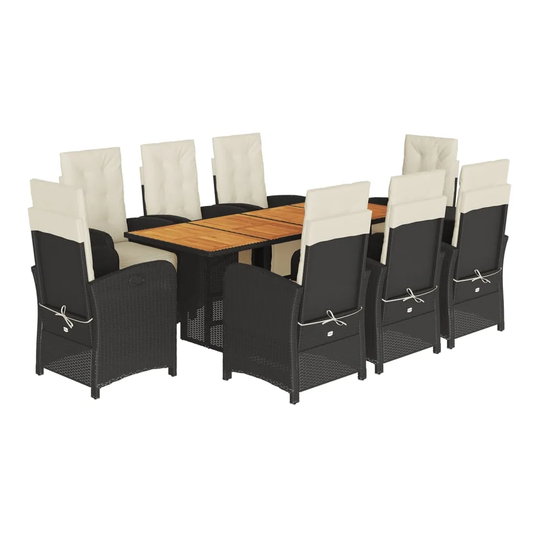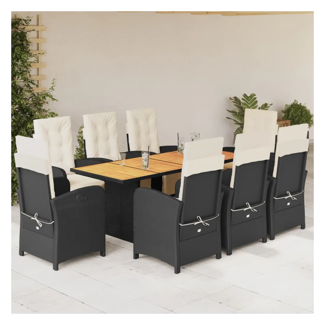 Savourez une tasse de café ou discutez avec votre famille et vos amis dans le jardin, l'arrière-cour ou sur le balcon avec cet ensemble de salle à manger de jardin confortable ! Matériau durable : la résine tressée, également connue sous le nom de poly rotin, est un matériau synthétique solide et nécessitant peu d'entretien qui ressemble au rotin naturel. Il est léger, facile à nettoyer et couramment utilisé pour les meubles d'extérieur en raison de sa durabilité et de ses propriétés de résistance aux intempéries.Dossier et repose-pied réglables : ce siège de jardin est doté d'une poignée. Vous pouvez régler le dossier et le repose-pied dans n'importe quelle position en tirant sur la poignée, et les remettre rapidement dans leur position initiale.Expérience d'assise confortable : ce mobilier d'extérieur, doté de coussins épais, offre une expérience d'assise confortable.Housse amovible et lavable : ces coussins de siège sont dotés de housses amovibles pour un lavage et un entretien faciles. Les coussins de dossier ont un rabat à l'arrière pour une fixation facile aux dossiers. Dessus stable et facile à nettoyer : cette table de jardin a un dessus en bois d'acacia robuste, durable et facile à nettoyer avec un chiffon humide. Bon à savoir :Pour que vos meubles d'extérieur restent beaux, nous vous recommandons de les protéger avec une housse imperméable.