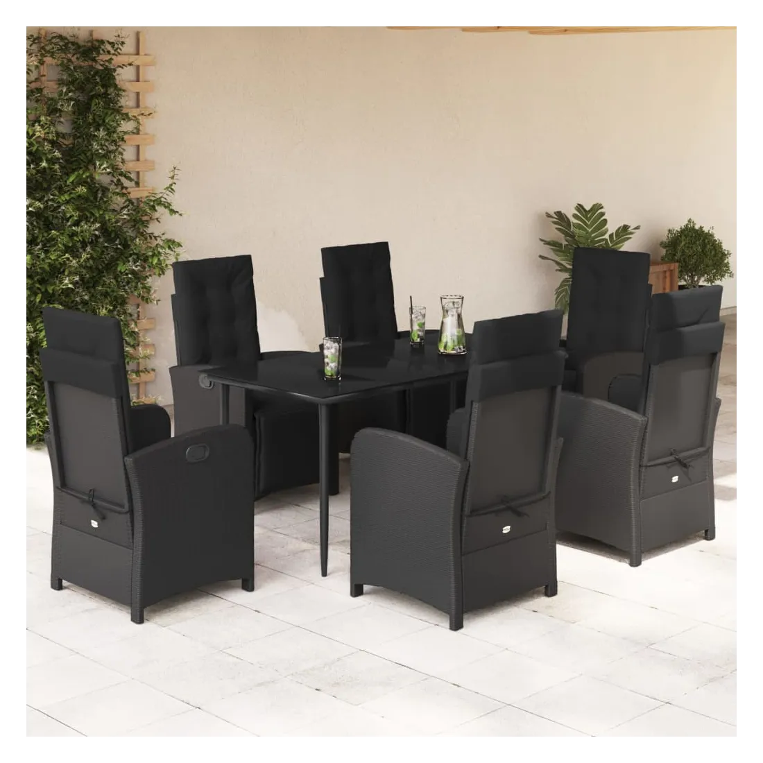 Savourez une tasse de café ou discutez avec votre famille et vos amis dans le jardin, l'arrière-cour ou sur le balcon avec cet ensemble de salle à manger de jardin confortable ! Matériau durable : la résine tressée, également connue sous le nom de poly rotin, est un matériau synthétique solide et nécessitant peu d'entretien qui ressemble au rotin naturel. Il est léger, facile à nettoyer et couramment utilisé pour les meubles d'extérieur en raison de sa durabilité et de ses propriétés de résistance aux intempéries.Dossier et repose-pied réglables : ce siège de jardin est doté d'une poignée. Vous pouvez régler le dossier et le repose-pied dans n'importe quelle position en tirant sur la poignée, et les remettre rapidement dans leur position initiale.Expérience d'assise confortable : ce mobilier d'extérieur, doté de coussins épais, offre une expérience d'assise confortable.Housse amovible et lavable : ces coussins de siège sont dotés de housses amovibles pour un lavage et un entretien faciles. Les coussins de dossier ont un rabat à l'arrière pour une fixation facile aux dossiers.Dessus en verre : le dessus de la table d'extérieur est fabriqué en verre trempé solide et durable, ce qui le rend facile à nettoyer avec un chiffon humide et ajoute une touche d'élégance à votre espace extérieur. Bon à savoir :Pour que vos meubles d'extérieur restent beaux, nous vous recommandons de les protéger avec une housse imperméable.