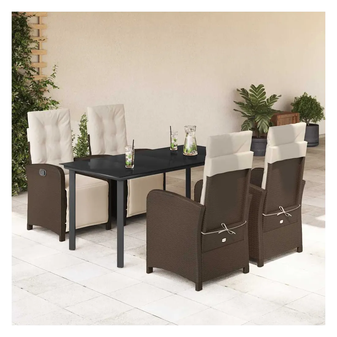 Savourez une tasse de café ou discutez avec votre famille et vos amis dans le jardin, l'arrière-cour ou sur le balcon avec cet ensemble de salle à manger de jardin confortable ! Matériau durable : la résine tressée, également connue sous le nom de poly rotin, est un matériau synthétique solide et nécessitant peu d'entretien qui ressemble au rotin naturel. Il est léger, facile à nettoyer et couramment utilisé pour les meubles d'extérieur en raison de sa durabilité et de ses propriétés de résistance aux intempéries.Dossier et repose-pied réglables : ce siège de jardin est doté d'une poignée. Vous pouvez régler le dossier et le repose-pied dans n'importe quelle position en tirant sur la poignée, et les remettre rapidement dans leur position initiale.Expérience d'assise confortable : ce mobilier d'extérieur, doté de coussins épais, offre une expérience d'assise confortable.Housse amovible et lavable : ces coussins de siège sont dotés de housses amovibles pour un lavage et un entretien faciles. Les coussins de dossier ont un rabat à l'arrière pour une fixation facile aux dossiers.Dessus en verre : le dessus de la table d'extérieur est fabriqué en verre trempé solide et durable, ce qui le rend facile à nettoyer avec un chiffon humide et ajoute une touche d'élégance à votre espace extérieur. Bon à savoir :Pour que vos meubles d'extérieur restent beaux, nous vous recommandons de les protéger avec une housse imperméable.