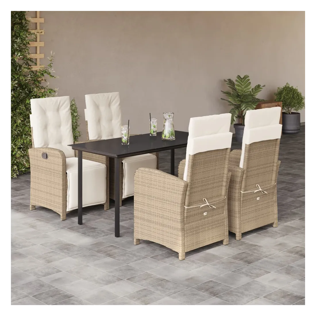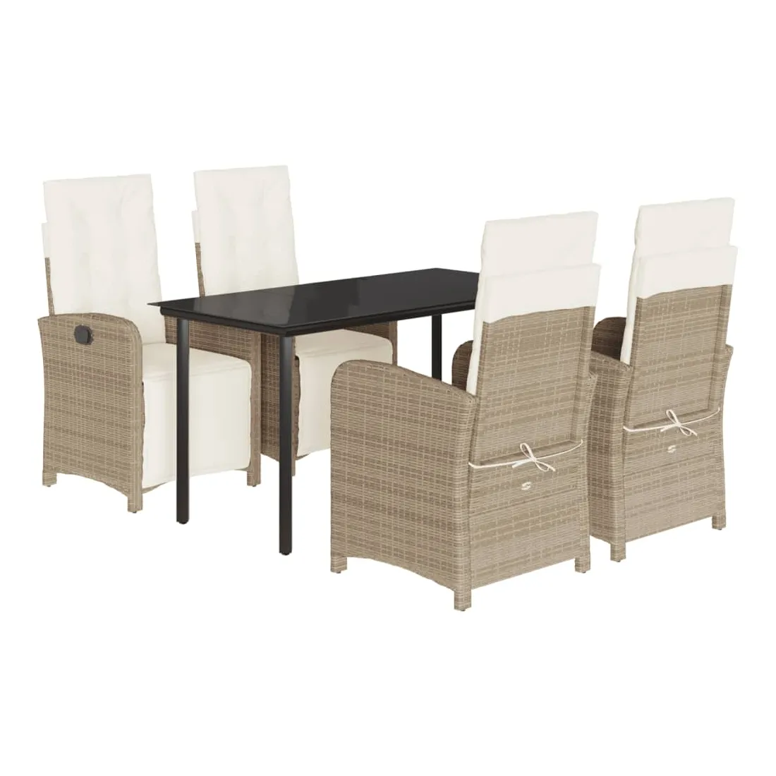 Ensemble à manger de jardin avec coussins 5pcs Beige poly rotin