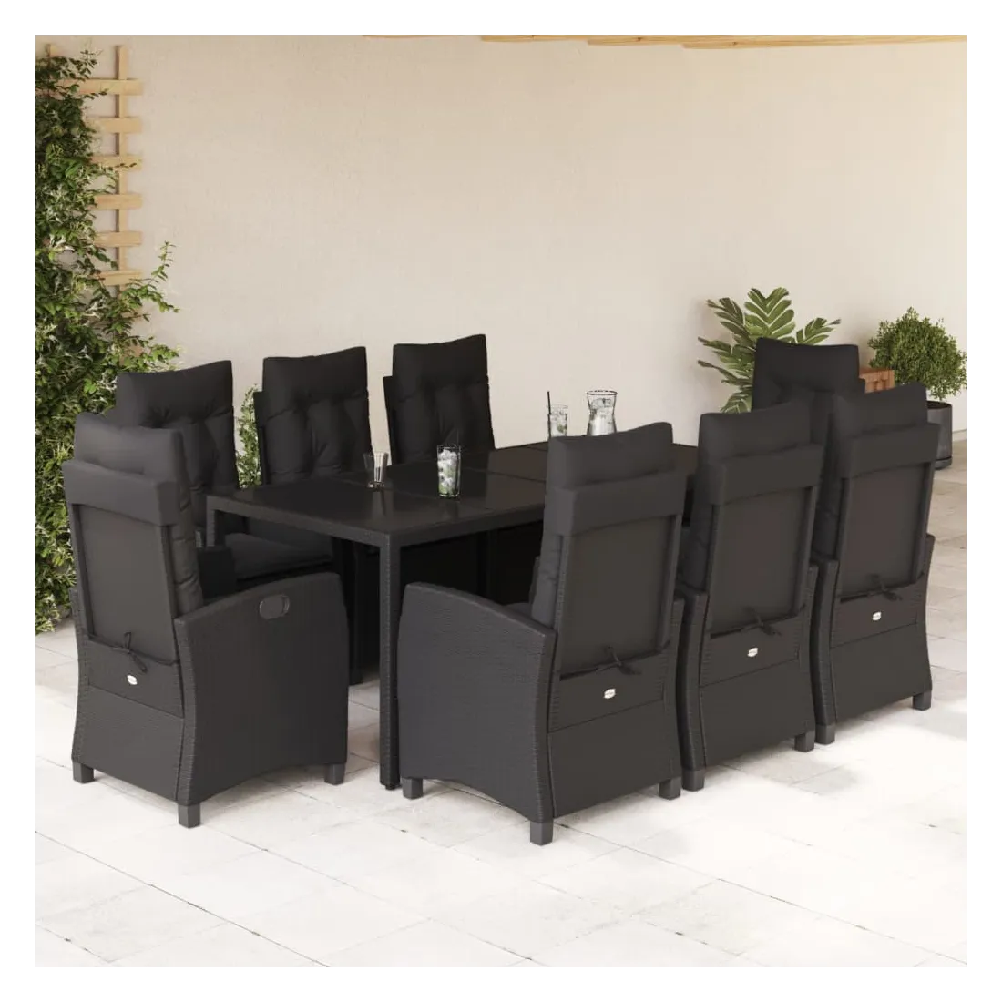 Cet ensemble de salle à manger de jardin est un excellent choix pour les repas en plein air ou pour vous détendre dans le jardin, l'arrière-cour ou le patio. Matériau durable : la résine tressée, également connue sous le nom de poly rotin, est un matériau synthétique solide et nécessitant peu d'entretien qui ressemble au rotin naturel. Il est léger, facile à nettoyer et couramment utilisé pour les meubles d'extérieur en raison de sa durabilité et de ses propriétés de résistance aux intempéries. Dossier réglable : ce siège de jardin est doté d'une poignée. Vous pouvez régler le dossier dans n'importe quelle position en tirant sur la poignée et le remettre rapidement dans sa position initiale.Dessus en verre : le dessus de la table d'extérieur est fabriqué en verre trempé solide et durable, ce qui le rend facile à nettoyer avec un chiffon humide et ajoute une touche d'élégance à votre espace extérieur. Expérience d'assise confortable : ce mobilier d'extérieur, doté de coussins épais, offre une expérience d'assise confortable. Housse amovible et lavable : ces coussins de siège sont dotés de housses amovibles pour un lavage et un entretien faciles. Bon à savoir :Pour que vos meubles d'extérieur restent beaux, nous vous recommandons de les protéger avec une housse imperméable.