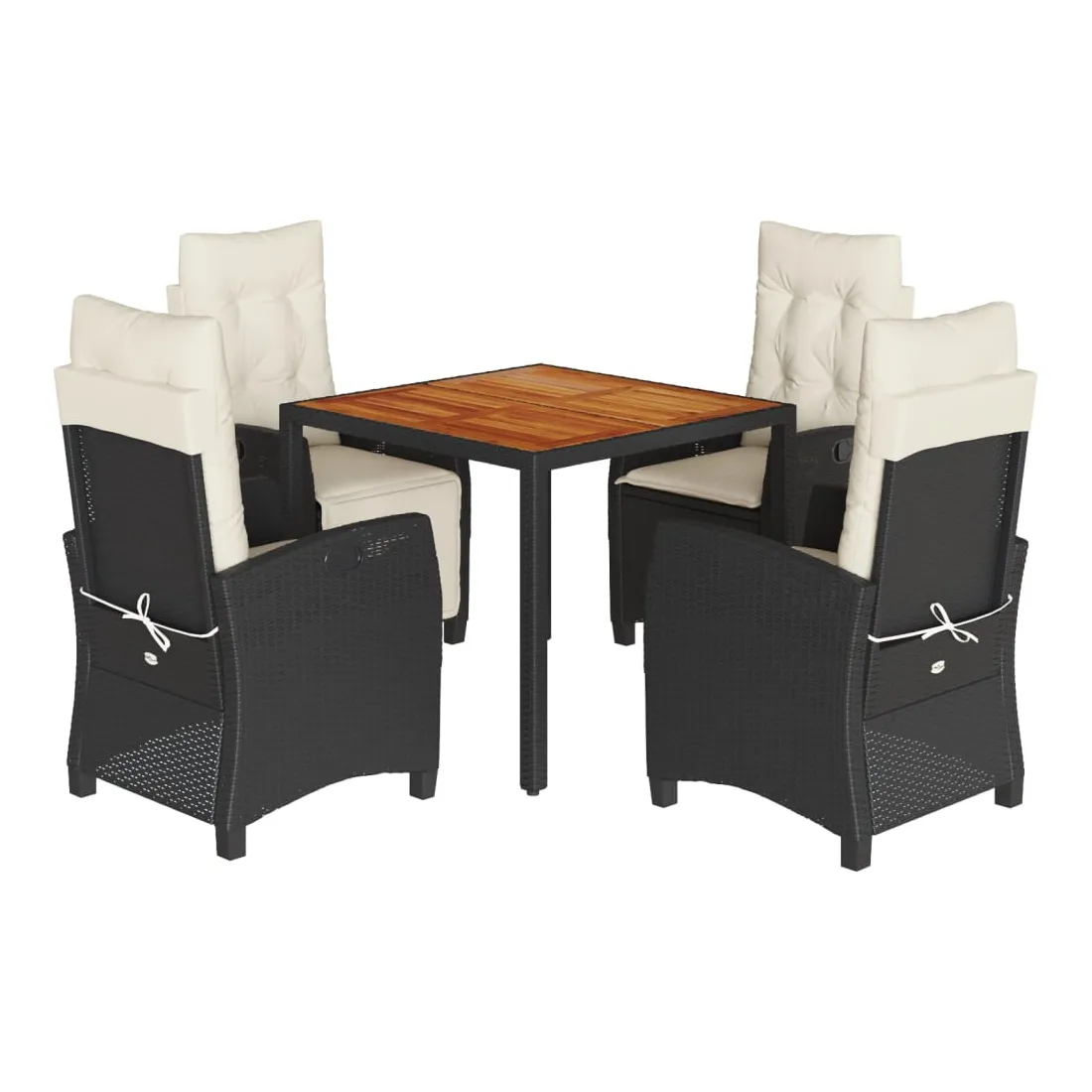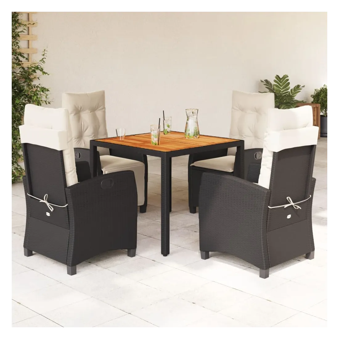Cet ensemble de salle à manger de jardin est un excellent choix pour les repas en plein air ou pour vous détendre dans le jardin, l'arrière-cour ou le patio. Matériau durable : la résine tressée, également connue sous le nom de poly rotin, est un matériau synthétique solide et nécessitant peu d'entretien qui ressemble au rotin naturel. Il est léger, facile à nettoyer et couramment utilisé pour les meubles d'extérieur en raison de sa durabilité et de ses propriétés de résistance aux intempéries. Dossier réglable : ce siège de jardin est doté d'une poignée. Vous pouvez régler le dossier dans n'importe quelle position en tirant sur la poignée et le remettre rapidement dans sa position initiale.Dessus stable et facile à nettoyer : cette table de jardin a un dessus en bois d'acacia robuste, durable et facile à nettoyer avec un chiffon humide. Expérience d'assise confortable : ce mobilier d'extérieur, doté de coussins épais, offre une expérience d'assise confortable. Housse amovible et lavable : ces coussins de siège sont dotés de housses amovibles pour un lavage et un entretien faciles. Bon à savoir :Pour que vos meubles d'extérieur restent beaux, nous vous recommandons de les protéger avec une housse imperméable.
