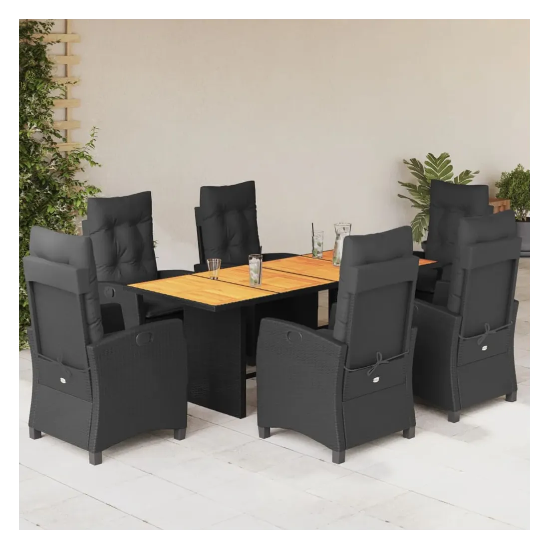 Cet ensemble de salle à manger de jardin est un excellent choix pour les repas en plein air ou pour vous détendre dans le jardin, l'arrière-cour ou le patio. Matériau durable : la résine tressée, également connue sous le nom de poly rotin, est un matériau synthétique solide et nécessitant peu d'entretien qui ressemble au rotin naturel. Il est léger, facile à nettoyer et couramment utilisé pour les meubles d'extérieur en raison de sa durabilité et de ses propriétés de résistance aux intempéries. Dossier réglable : ce siège de jardin est doté d'une poignée. Vous pouvez régler le dossier dans n'importe quelle position en tirant sur la poignée et le remettre rapidement dans sa position initiale.Dessus stable et facile à nettoyer : cette table de jardin a un dessus en bois d'acacia robuste, durable et facile à nettoyer avec un chiffon humide. Expérience d'assise confortable : ce mobilier d'extérieur, doté de coussins épais, offre une expérience d'assise confortable. Housse amovible et lavable : ces coussins de siège sont dotés de housses amovibles pour un lavage et un entretien faciles. Bon à savoir :Pour que vos meubles d'extérieur restent beaux, nous vous recommandons de les protéger avec une housse imperméable.