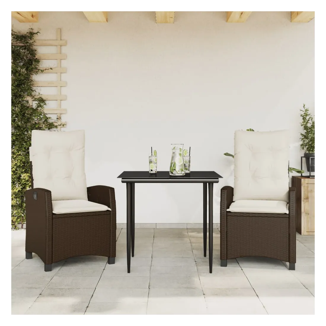 Cet ensemble de salle à manger de jardin est un excellent choix pour les repas en plein air ou pour vous détendre dans le jardin, l'arrière-cour ou le patio. Matériau durable : la résine tressée, également connue sous le nom de poly rotin, est un matériau synthétique solide et nécessitant peu d'entretien qui ressemble au rotin naturel. Il est léger, facile à nettoyer et couramment utilisé pour les meubles d'extérieur en raison de sa durabilité et de ses propriétés de résistance aux intempéries. Dossier réglable : ce siège de jardin est doté d'une poignée. Vous pouvez régler le dossier dans n'importe quelle position en tirant sur la poignée et le remettre rapidement dans sa position initiale.Dessus en verre : le dessus de la table d'extérieur est fabriqué en verre trempé solide et durable, ce qui le rend facile à nettoyer avec un chiffon humide et ajoute une touche d'élégance à votre espace extérieur. Expérience d'assise confortable : ce mobilier d'extérieur, doté de coussins épais, offre une expérience d'assise confortable. Housse amovible et lavable : ces coussins de siège sont dotés de housses amovibles pour un lavage et un entretien faciles. Bon à savoir :Pour que vos meubles d'extérieur restent beaux, nous vous recommandons de les protéger avec une housse imperméable.