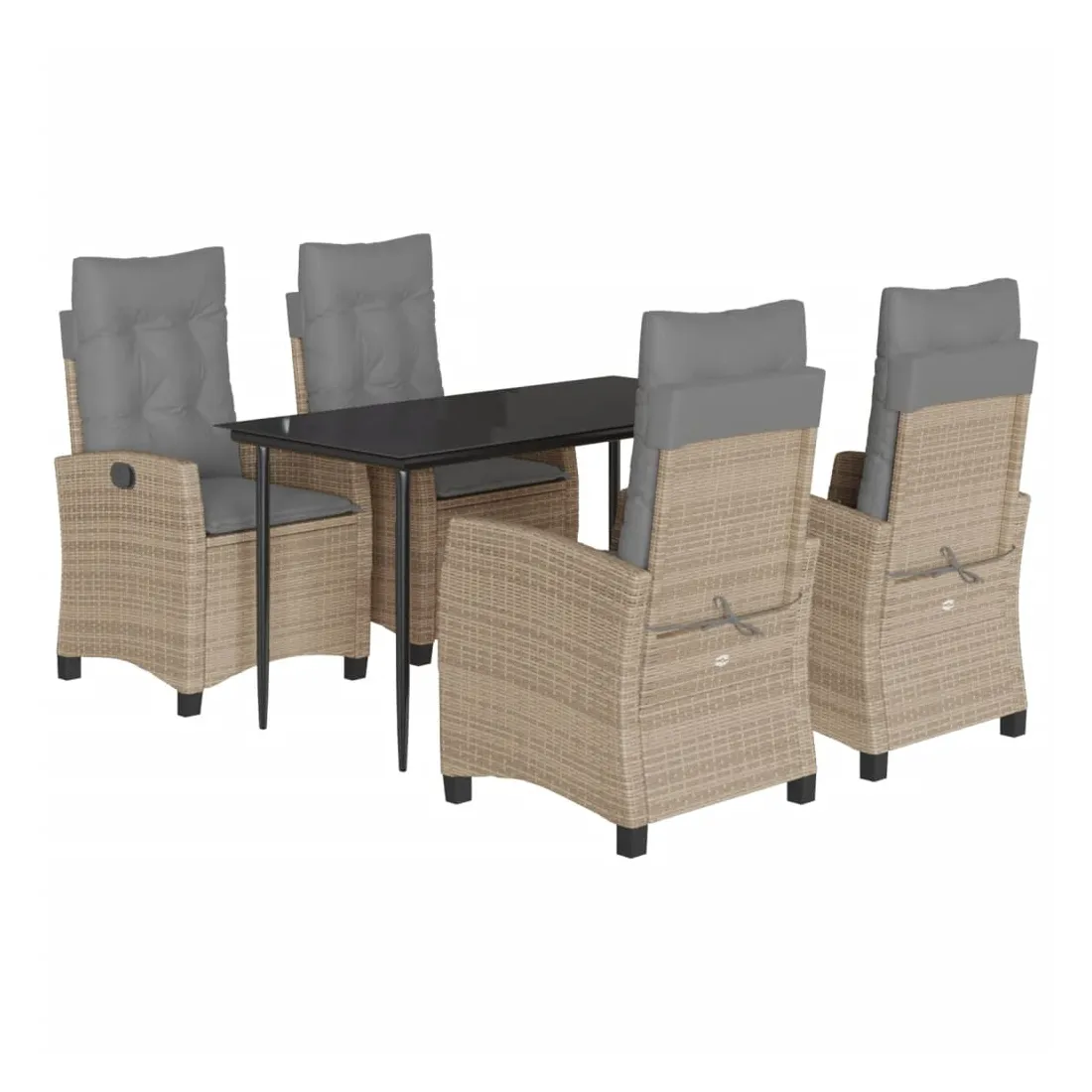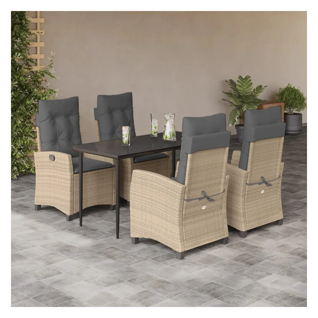 Cet ensemble de salle à manger de jardin est un excellent choix pour les repas en plein air ou pour vous détendre dans le jardin, l'arrière-cour ou le patio. Matériau durable : la résine tressée, également connue sous le nom de poly rotin, est un matériau synthétique solide et nécessitant peu d'entretien qui ressemble au rotin naturel. Il est léger, facile à nettoyer et couramment utilisé pour les meubles d'extérieur en raison de sa durabilité et de ses propriétés de résistance aux intempéries. Dossier réglable : ce siège de jardin est doté d'une poignée. Vous pouvez régler le dossier dans n'importe quelle position en tirant sur la poignée et le remettre rapidement dans sa position initiale.Dessus en verre : le dessus de la table d'extérieur est fabriqué en verre trempé solide et durable, ce qui le rend facile à nettoyer avec un chiffon humide et ajoute une touche d'élégance à votre espace extérieur. Expérience d'assise confortable : ce mobilier d'extérieur, doté de coussins épais, offre une expérience d'assise confortable. Housse amovible et lavable : ces coussins de siège sont dotés de housses amovibles pour un lavage et un entretien faciles. Bon à savoir :Pour que vos meubles d'extérieur restent beaux, nous vous recommandons de les protéger avec une housse imperméable.