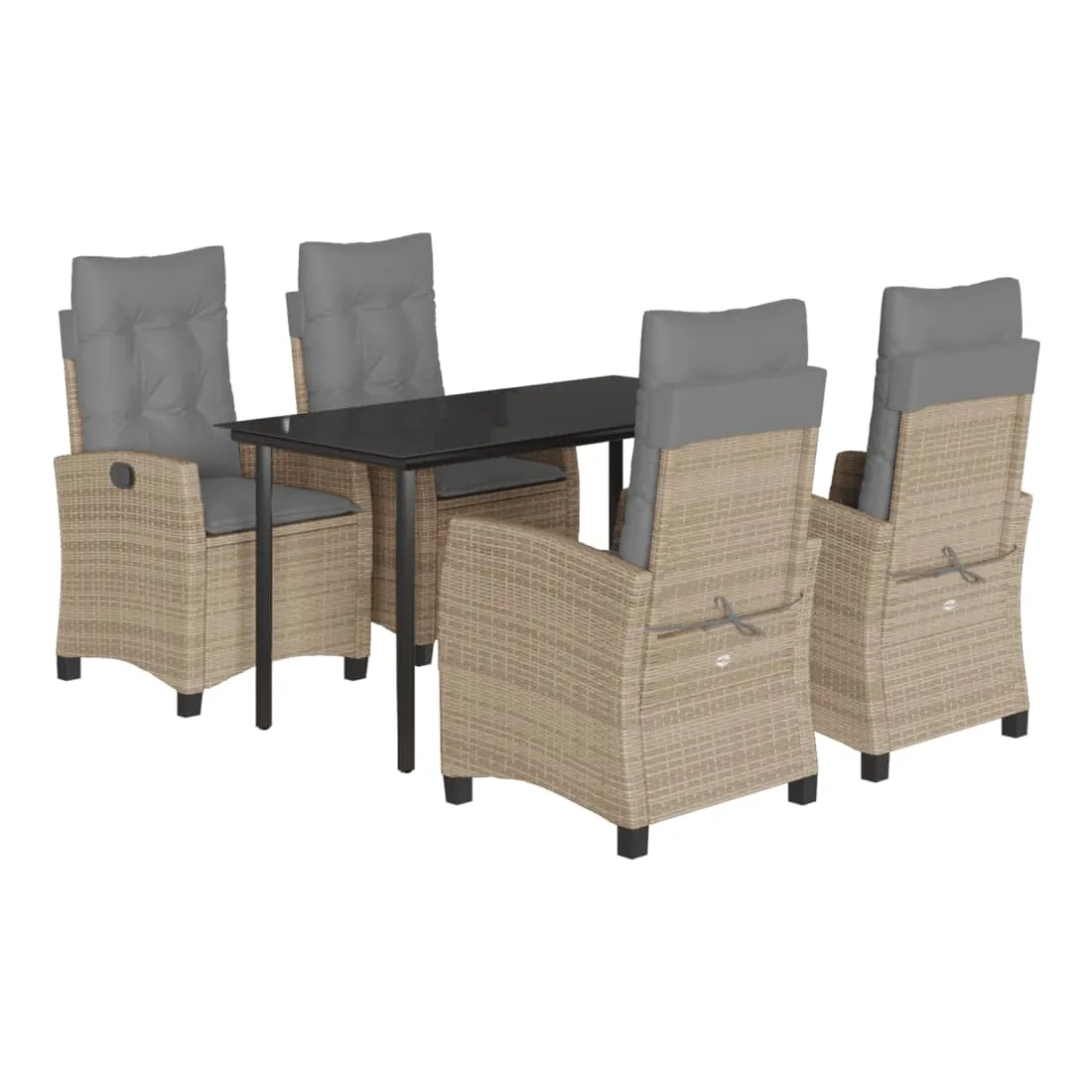 Cet ensemble de salle à manger de jardin est un excellent choix pour les repas en plein air ou pour vous détendre dans le jardin, l'arrière-cour ou le patio. Matériau durable : la résine tressée, également connue sous le nom de poly rotin, est un matériau synthétique solide et nécessitant peu d'entretien qui ressemble au rotin naturel. Il est léger, facile à nettoyer et couramment utilisé pour les meubles d'extérieur en raison de sa durabilité et de ses propriétés de résistance aux intempéries. Dossier réglable : ce siège de jardin est doté d'une poignée. Vous pouvez régler le dossier dans n'importe quelle position en tirant sur la poignée et le remettre rapidement dans sa position initiale.Dessus en verre : le dessus de la table d'extérieur est fabriqué en verre trempé solide et durable, ce qui le rend facile à nettoyer avec un chiffon humide et ajoute une touche d'élégance à votre espace extérieur. Expérience d'assise confortable : ce mobilier d'extérieur, doté de coussins épais, offre une expérience d'assise confortable. Housse amovible et lavable : ces coussins de siège sont dotés de housses amovibles pour un lavage et un entretien faciles. Bon à savoir :Pour que vos meubles d'extérieur restent beaux, nous vous recommandons de les protéger avec une housse imperméable.