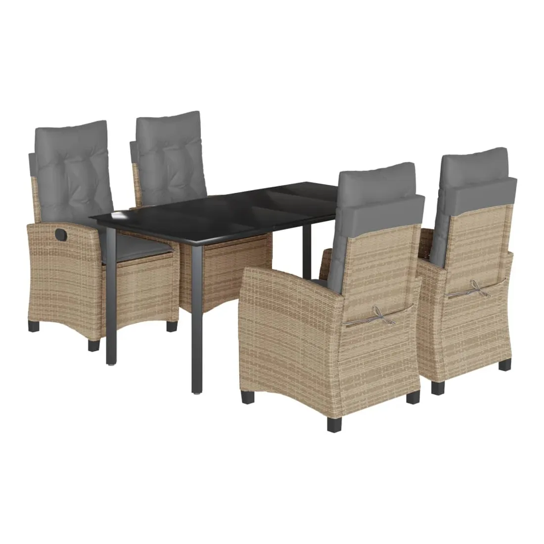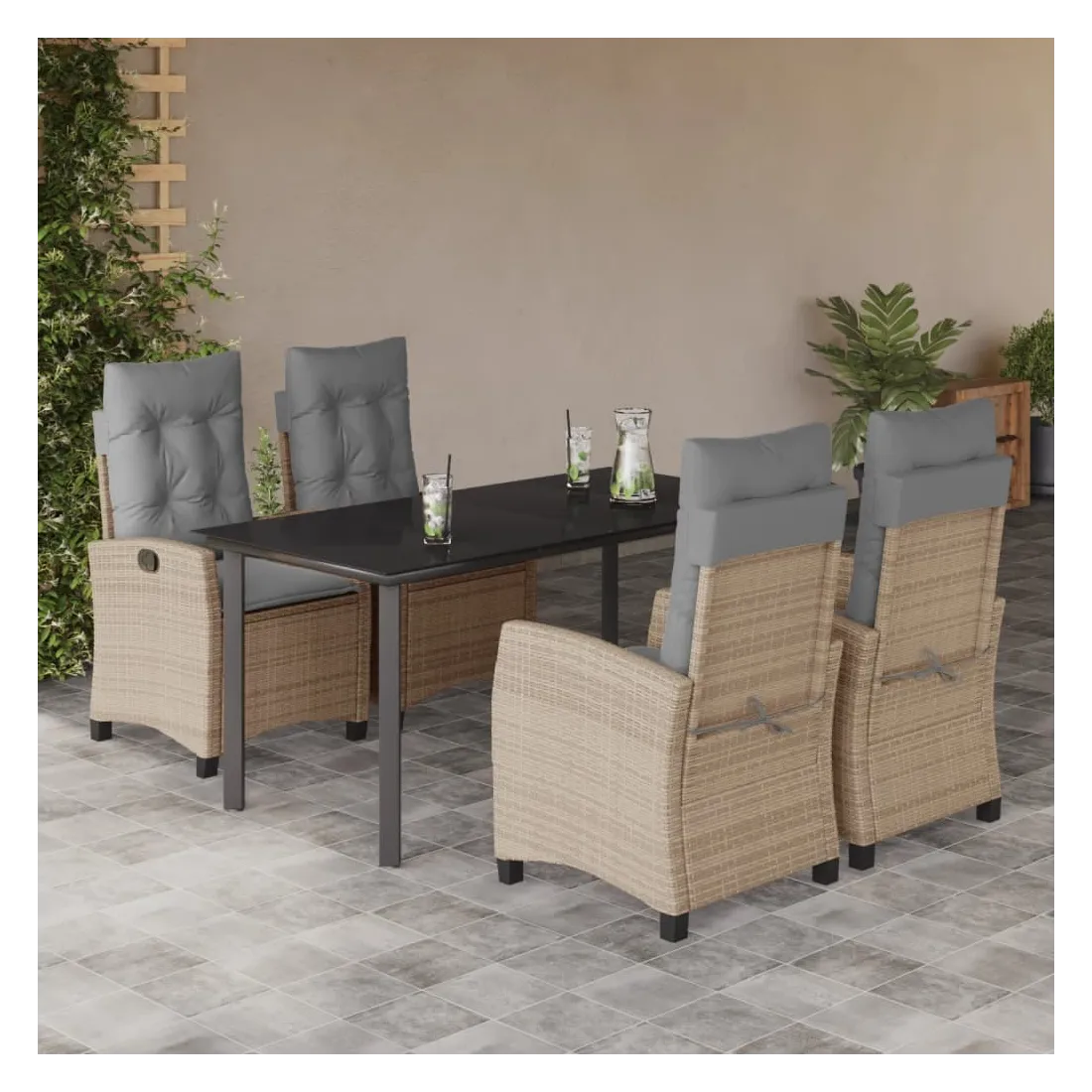 Cet ensemble de salle à manger de jardin est un excellent choix pour les repas en plein air ou pour vous détendre dans le jardin, l'arrière-cour ou le patio. Matériau durable : la résine tressée, également connue sous le nom de poly rotin, est un matériau synthétique solide et nécessitant peu d'entretien qui ressemble au rotin naturel. Il est léger, facile à nettoyer et couramment utilisé pour les meubles d'extérieur en raison de sa durabilité et de ses propriétés de résistance aux intempéries. Dossier réglable : ce siège de jardin est doté d'une poignée. Vous pouvez régler le dossier dans n'importe quelle position en tirant sur la poignée et le remettre rapidement dans sa position initiale.Dessus en verre : le dessus de la table d'extérieur est fabriqué en verre trempé solide et durable, ce qui le rend facile à nettoyer avec un chiffon humide et ajoute une touche d'élégance à votre espace extérieur. Expérience d'assise confortable : ce mobilier d'extérieur, doté de coussins épais, offre une expérience d'assise confortable. Housse amovible et lavable : ces coussins de siège sont dotés de housses amovibles pour un lavage et un entretien faciles. Bon à savoir :Pour que vos meubles d'extérieur restent beaux, nous vous recommandons de les protéger avec une housse imperméable.