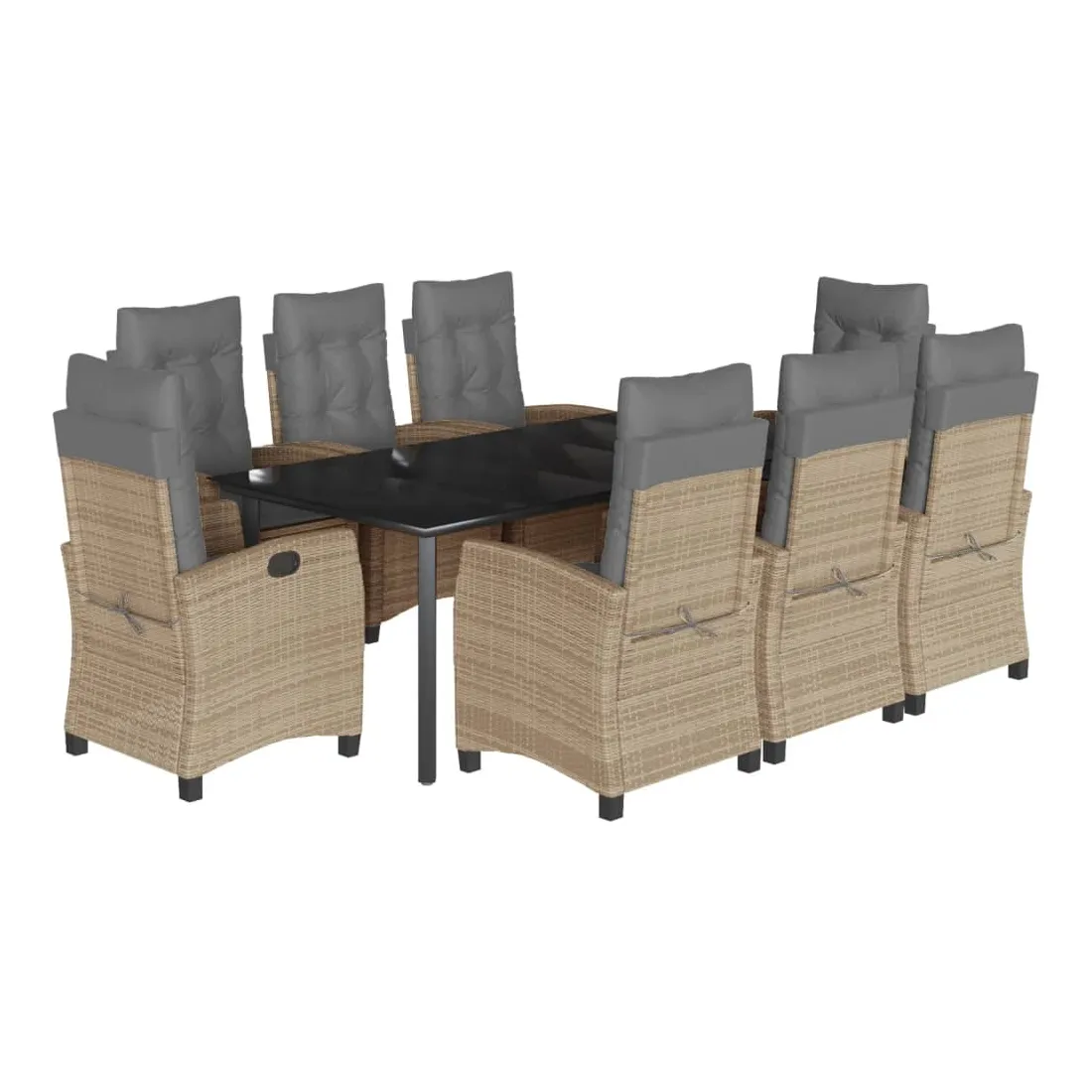 Cet ensemble de salle à manger de jardin est un excellent choix pour les repas en plein air ou pour vous détendre dans le jardin, l'arrière-cour ou le patio. Matériau durable : la résine tressée, également connue sous le nom de poly rotin, est un matériau synthétique solide et nécessitant peu d'entretien qui ressemble au rotin naturel. Il est léger, facile à nettoyer et couramment utilisé pour les meubles d'extérieur en raison de sa durabilité et de ses propriétés de résistance aux intempéries. Dossier réglable : ce siège de jardin est doté d'une poignée. Vous pouvez régler le dossier dans n'importe quelle position en tirant sur la poignée et le remettre rapidement dans sa position initiale.Dessus en verre : le dessus de la table d'extérieur est fabriqué en verre trempé solide et durable, ce qui le rend facile à nettoyer avec un chiffon humide et ajoute une touche d'élégance à votre espace extérieur. Expérience d'assise confortable : ce mobilier d'extérieur, doté de coussins épais, offre une expérience d'assise confortable. Housse amovible et lavable : ces coussins de siège sont dotés de housses amovibles pour un lavage et un entretien faciles. Bon à savoir :Pour que vos meubles d'extérieur restent beaux, nous vous recommandons de les protéger avec une housse imperméable.